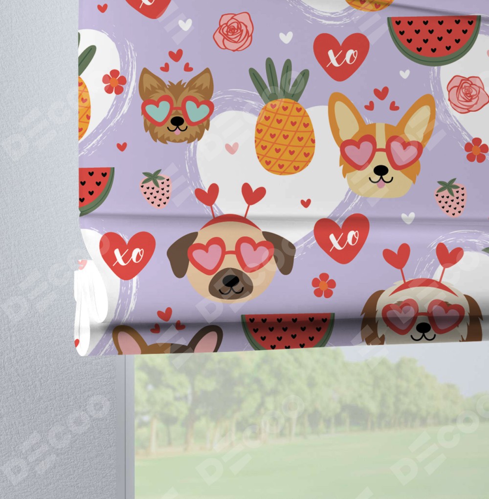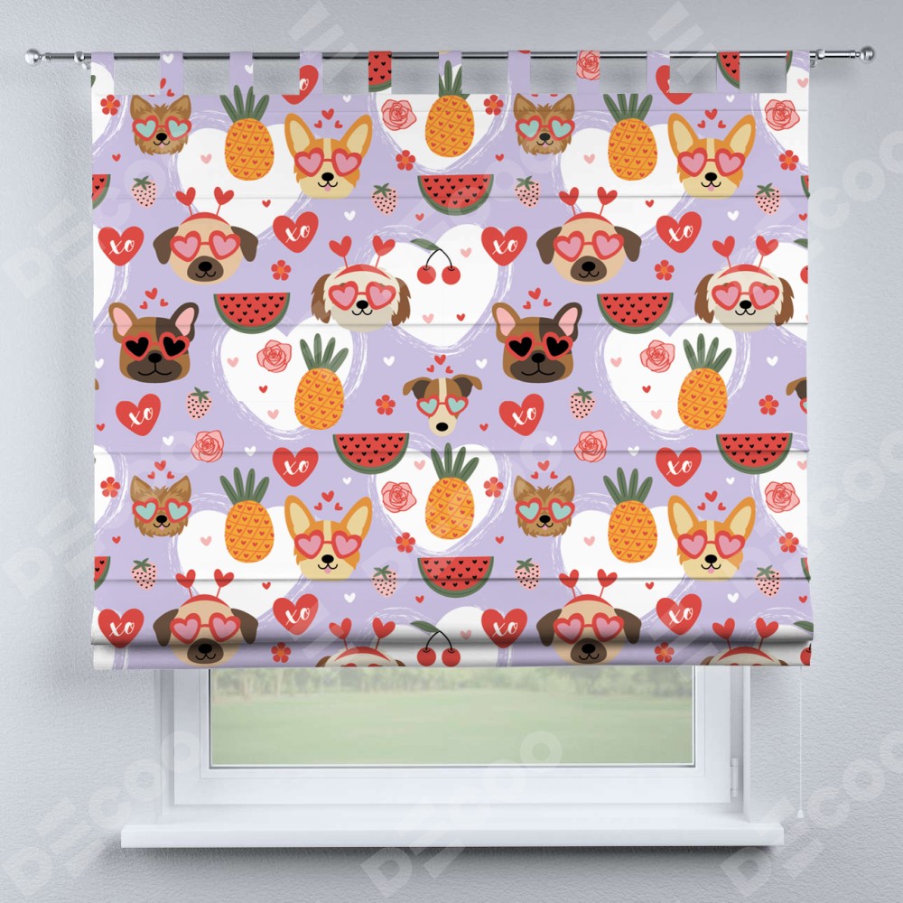 Римская штора производителя «Cortin», используется для проёма, пошита из ткани блэкаут с нанесением сублимационной печати «Забавные собачки». Данная модель пошита на петлях, комплектуется на выбор круглым карнизом и подходит для монтажа на стену. Римская штора на петлях имеет простую систему регулировки высоты, отличительным преимуществом данной модели является простой способ монтажа. Достаточно повесить ее на трубу и штора готова!