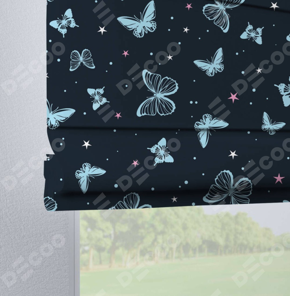 Римская штора производителя «Cortin», используется для проёма, пошита из ткани блэкаут с нанесением сублимационной печати «Неоновые бабочки». Данная модель пошита на петлях, комплектуется на выбор круглым карнизом и подходит для монтажа на стену. Римская штора на петлях имеет простую систему регулировки высоты, отличительным преимуществом данной модели является простой способ монтажа. Достаточно повесить ее на трубу и штора готова!