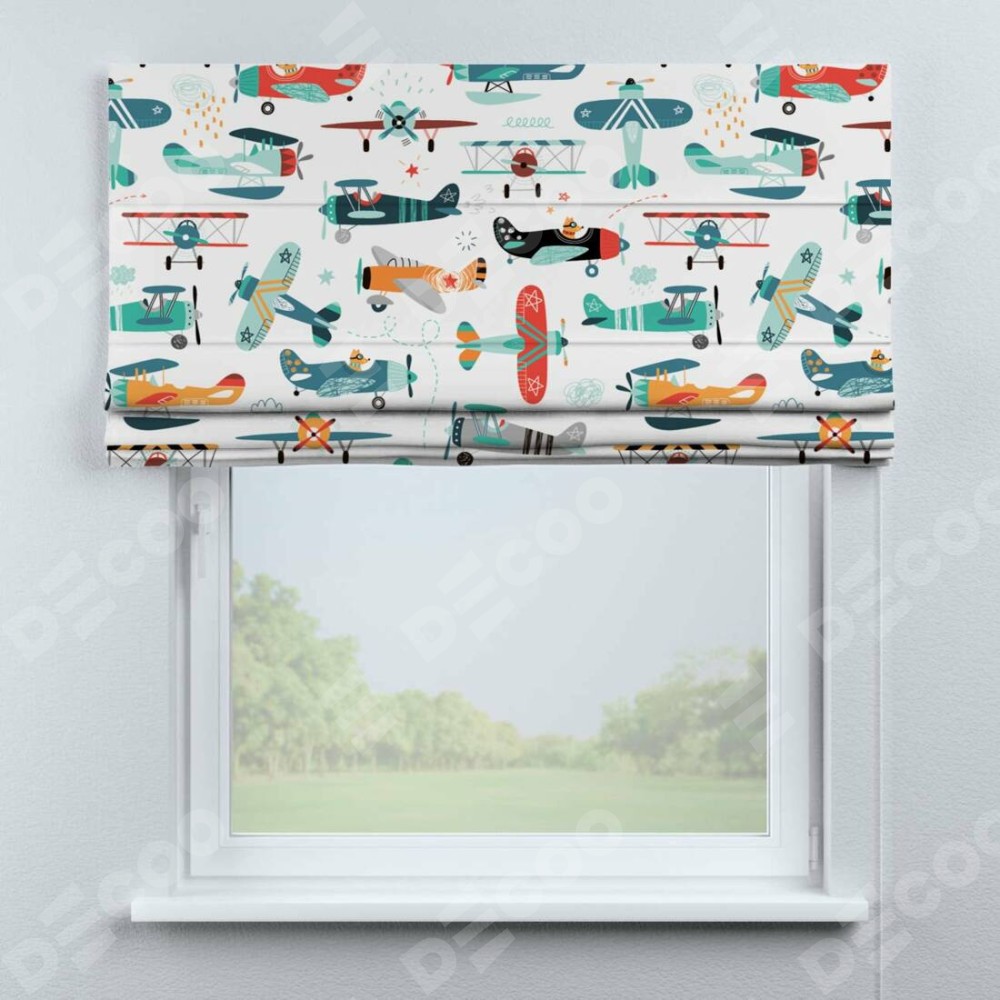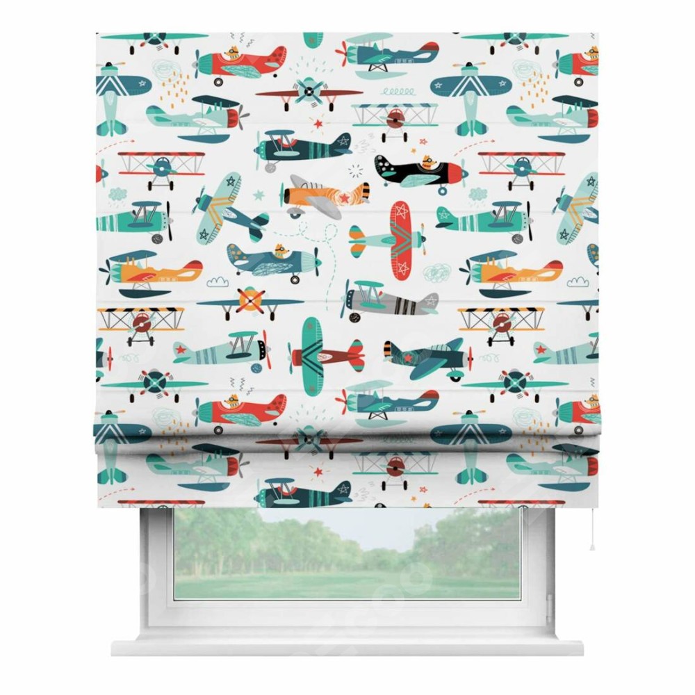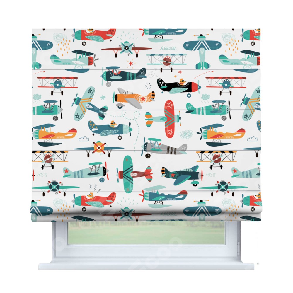 Римская штора «Кортин» для проема «Самолёты и пилоты»