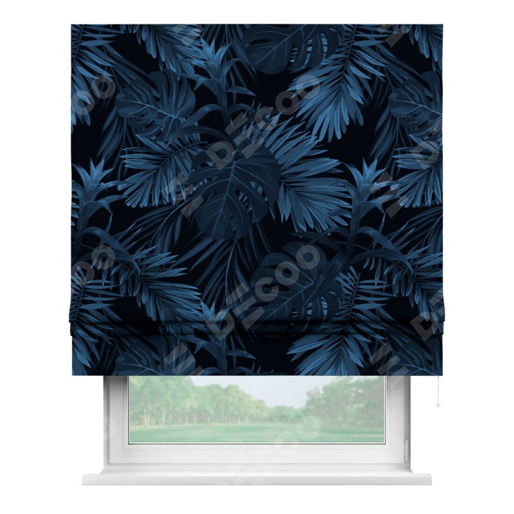 Римская штора производителя «Cortin», используется для проёма, пошита из ткани блэкаут с нанесением сублимационной печати «Ночные джунгли». Имеет универсальный механизм и подходит для монтажа: на потолок, на стену и в нишу.