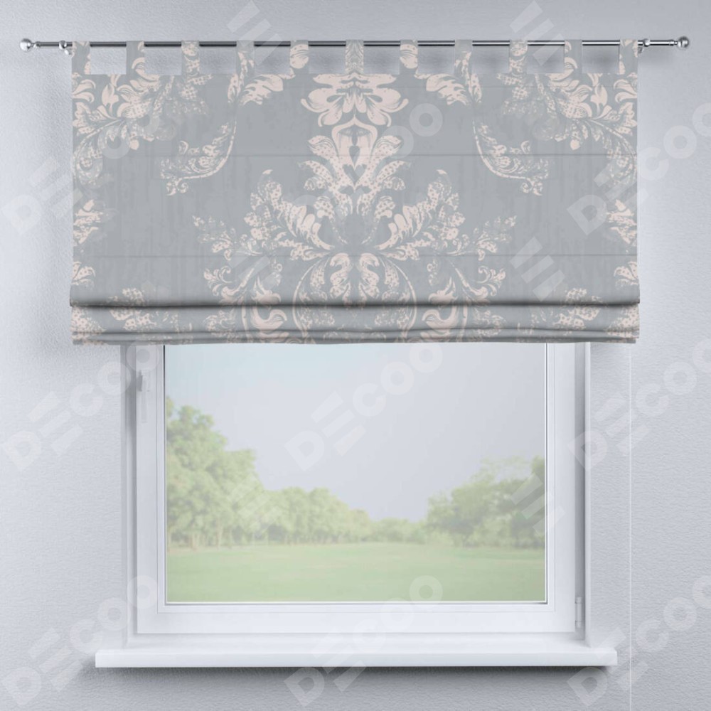 Римская штора производителя «Cortin», используется для проёма, пошита из ткани блэкаут с нанесением сублимационной печати «Винтажный узор серый». Данная модель пошита на петлях, комплектуется на выбор круглым карнизом и подходит для монтажа на стену. Римская штора на петлях имеет простую систему регулировки высоты, отличительным преимуществом данной модели является простой способ монтажа. Достаточно повесить ее на трубу и штора готова!