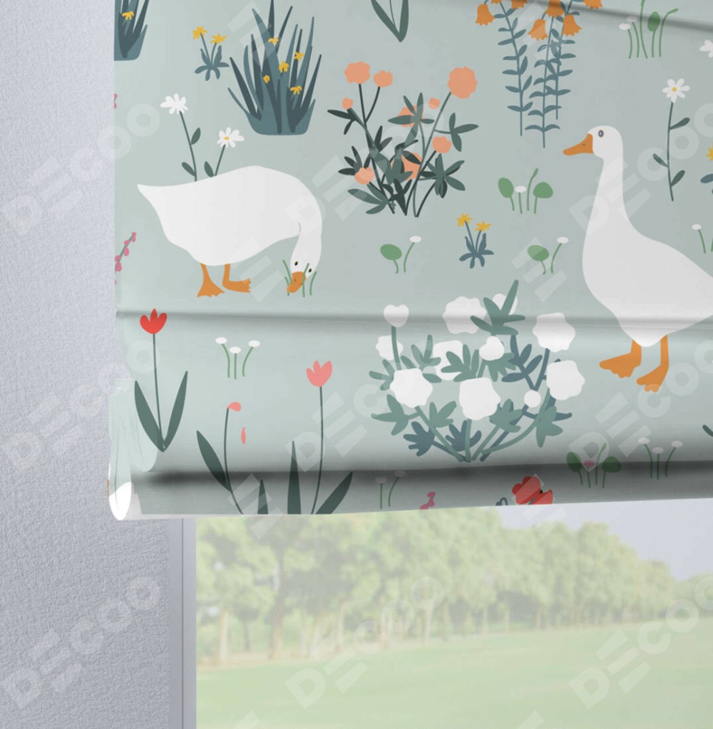 Римская штора производителя «Cortin», используется для проёма, пошита из ткани блэкаут с нанесением сублимационной печати «Гуси на лугу». Данная модель пошита на петлях, комплектуется на выбор круглым карнизом и подходит для монтажа на стену. Римская штора на петлях имеет простую систему регулировки высоты, отличительным преимуществом данной модели является простой способ монтажа. Достаточно повесить ее на трубу и штора готова!