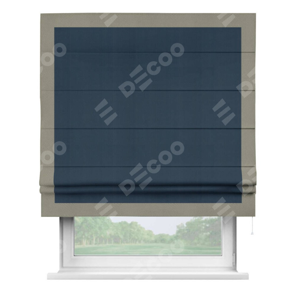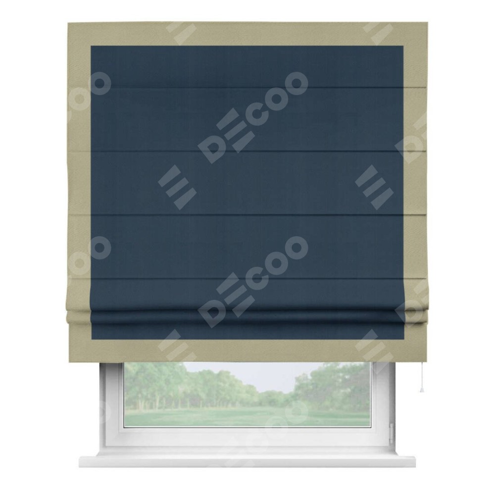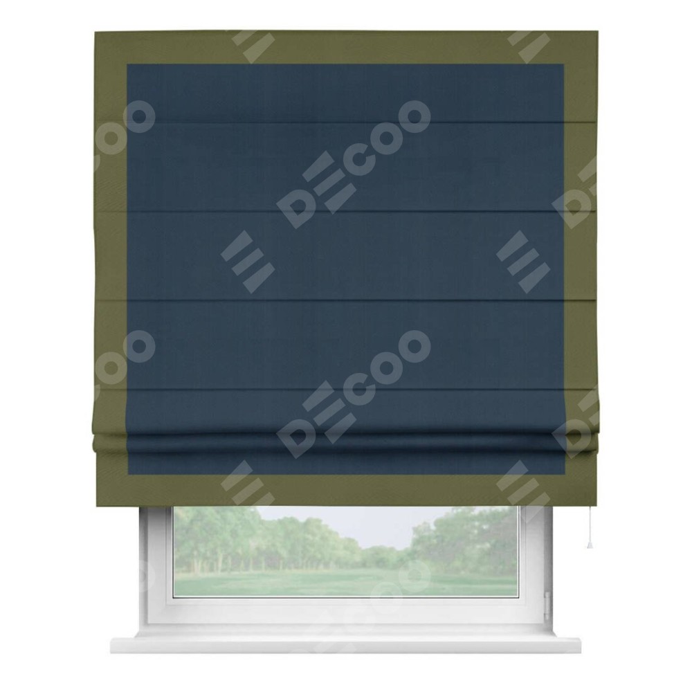 Римская штора производителя «Cortin», используется для проёма, пошита из ткани блэкаут однотонный синий, артикул ткани 29327. Отделка шторы кантом «Чесс», ткань для канта используется из блэкаута однотонного разной расцветки на выбор. Имеет универсальный механизм и подходит для монтажа: на потолок, на стену и в нишу.