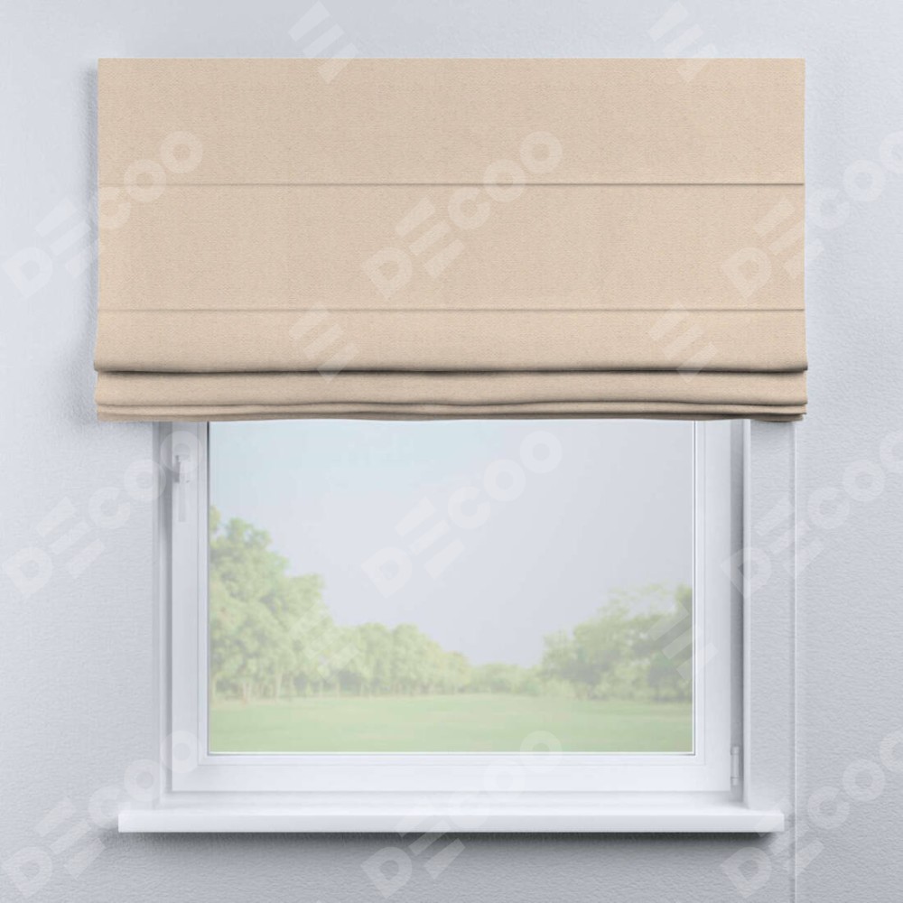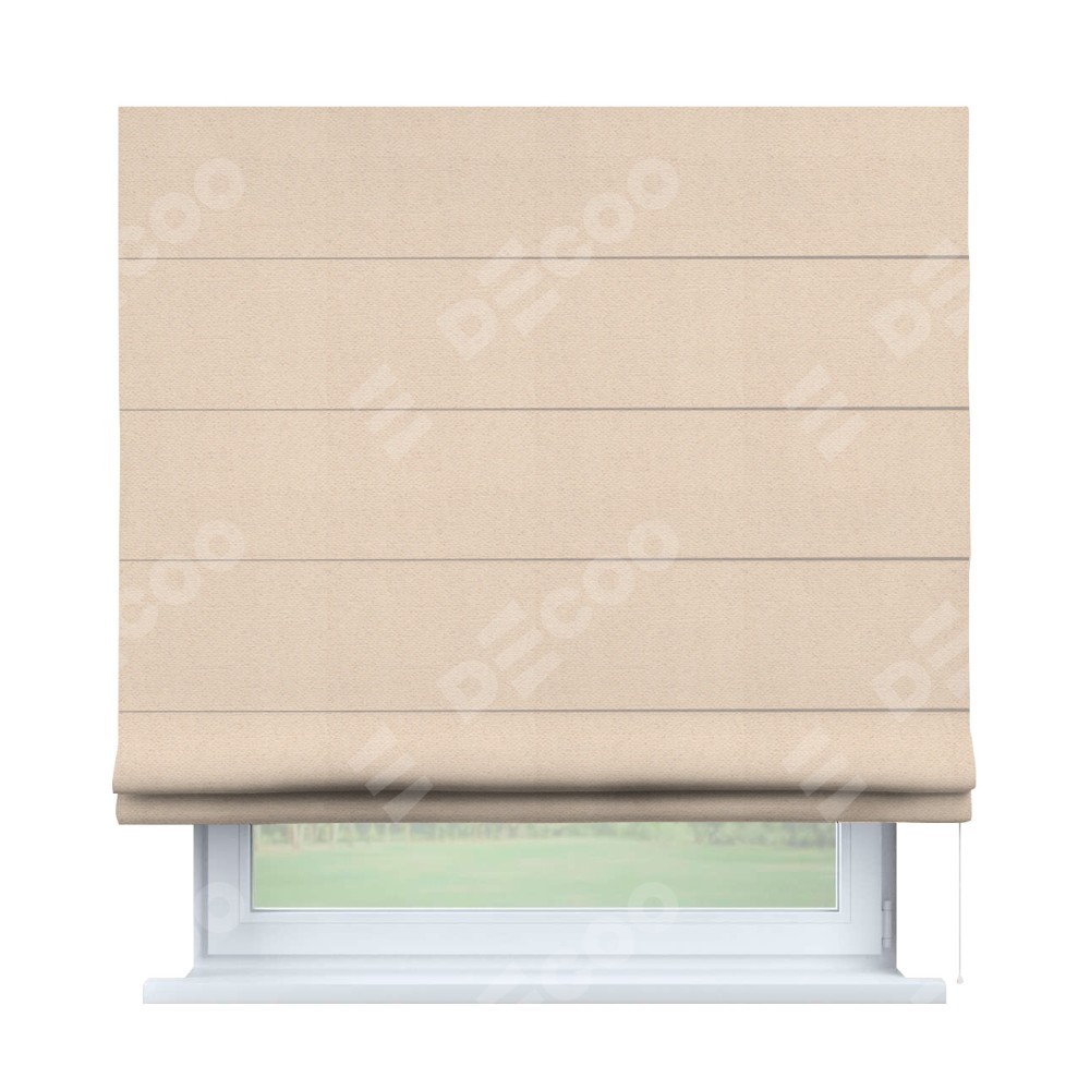 Римская штора производителя «Cortin», используется для проёма, пошита из ткани блэкаут тиснение с блеском розовая пудра, артикул ткани 34632. Изнаночная сторона материала черного цвета, что обеспечивает необходимую светонепроницаемость. Имеет универсальный механизм и подходит для монтажа: на потолок, на стену и в нишу.