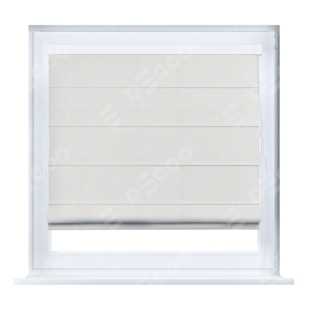 Римская штора кассетного типа, производителя «Cortin», устанавливается только на пластиковые окна и прилегает к стеклопакету, пошита из ткани из ткани блэкаут тиснение с блеском светло-серый, артикул 34633. Изнаночная сторона материала черного цвета, что обеспечивает необходимую светонепроницаемость.