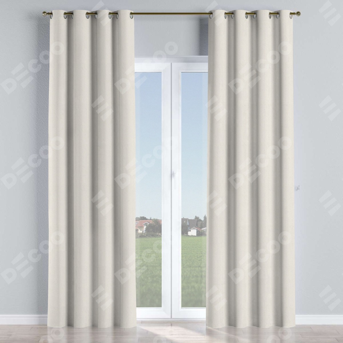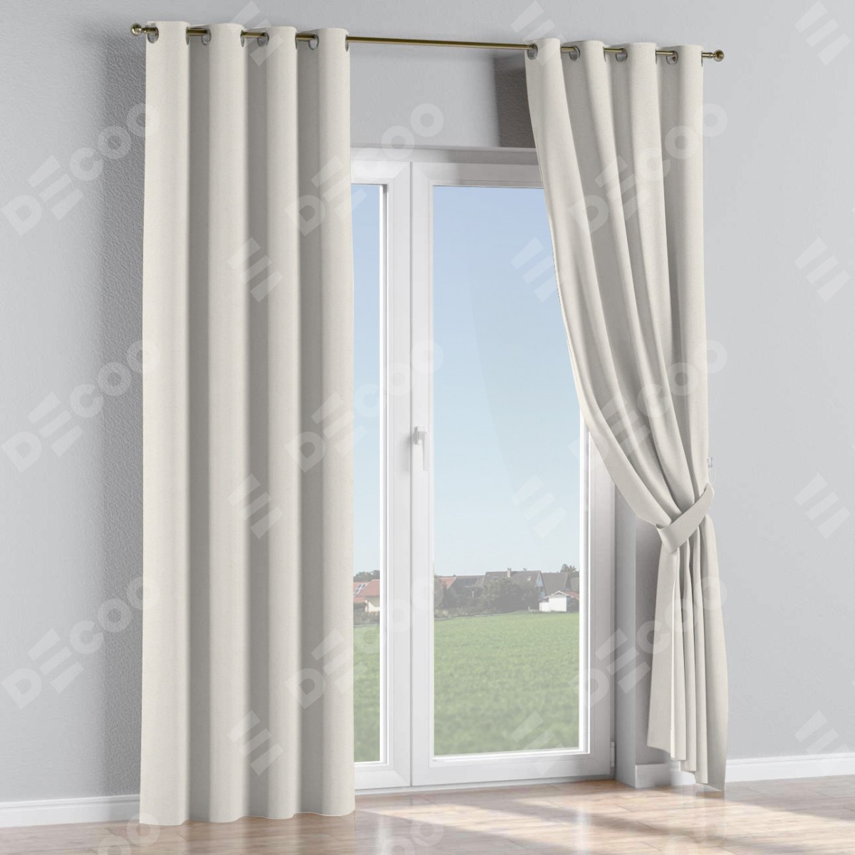 Комплект прямых штор, от производителя «Cortin», пошиты из ткани блэкаут с блеском светло-серый, артикул ткани 34633. Обратная сторона основного материала черного цвета, что обеспечивает необходимую светонепроницаемость. Данная модель пошита на люверсах, комплектуется на выбор круглым карнизом и подходит для монтажа на стену или потолок. Прямые шторы на люверсах шьются по стандарту с коэффициентом 1/2 (на 100 см. ширины проёма 200 см. ширины ткани), отличительным преимуществом данной модели является простой способ монтажа. Достаточно повесить ее на трубу и штора готова!
