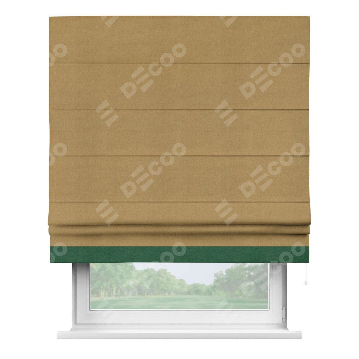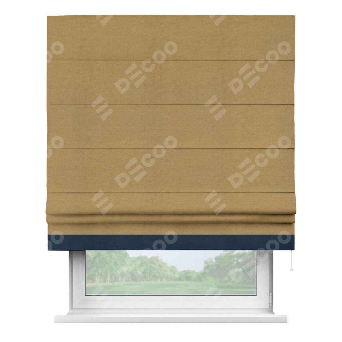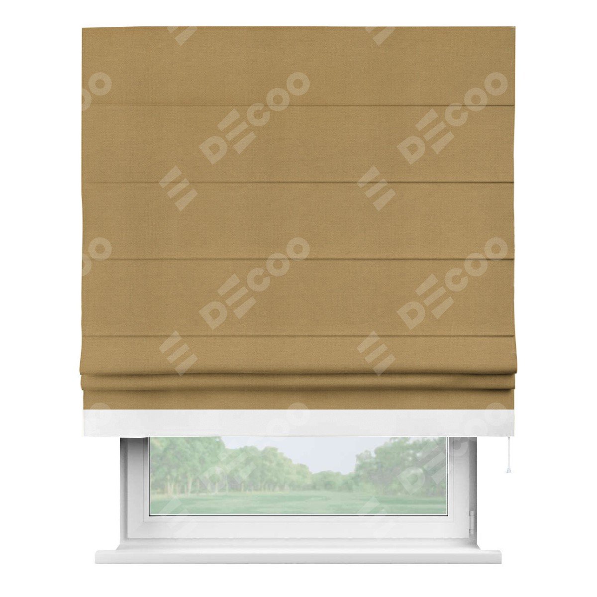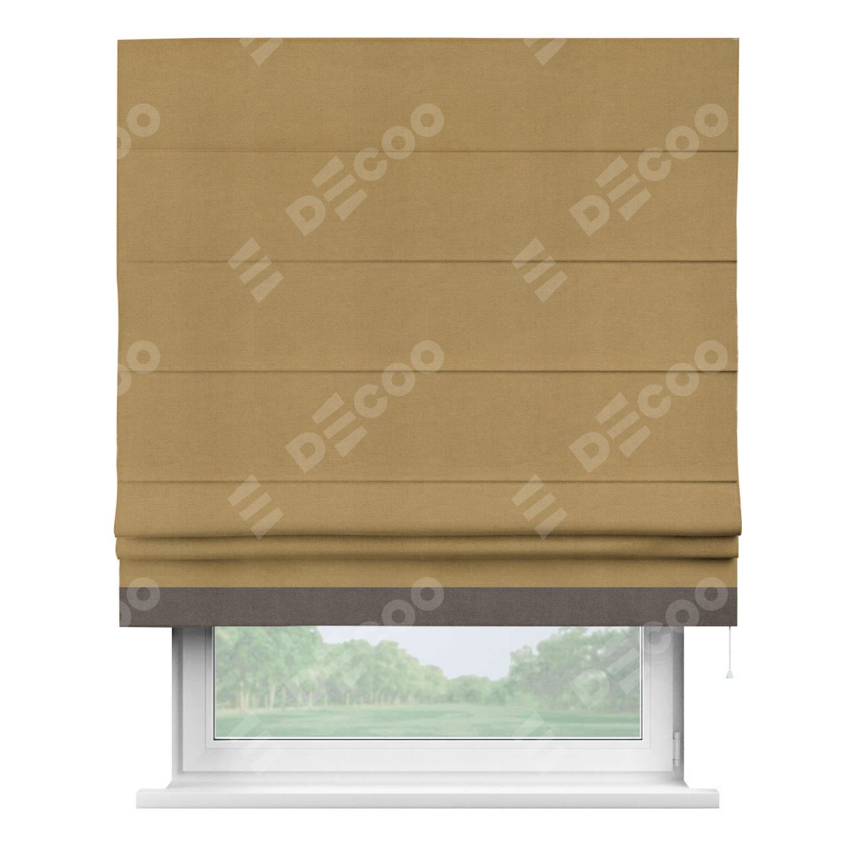 Римская штора производителя «Cortin», используется для проёма, пошита из ткани вельвет горчица, артикул ткани 17760. Отделка шторы кантом «Джестер», ткань для канта используется из вельвета разной расцветки на выбор. Имеет универсальный механизм и подходит для монтажа: на потолок, на стену и в нишу.