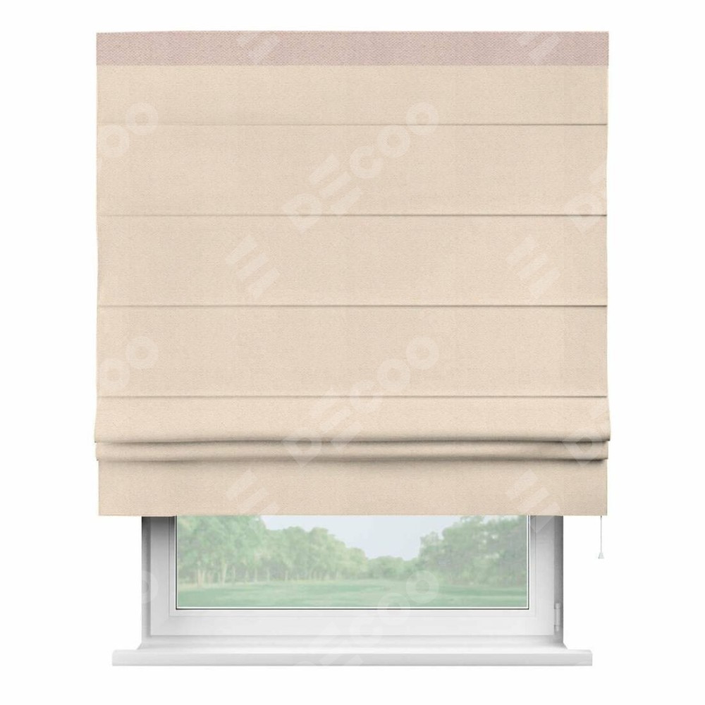 Римская штора производителя «Cortin», используется для проёма, пошита из ткани блэкаут с блеском розовая пудра, артикул 34632. Отделка шторы кантом «Кинг», ткань для канта используется из блэкаута с блеском разной расцветки на выбор. Изнаночная сторона материала черного цвета, что обеспечивает необходимую светонепроницаемость. Имеет универсальный механизм и подходит для монтажа: на потолок, на стену и в нишу.
