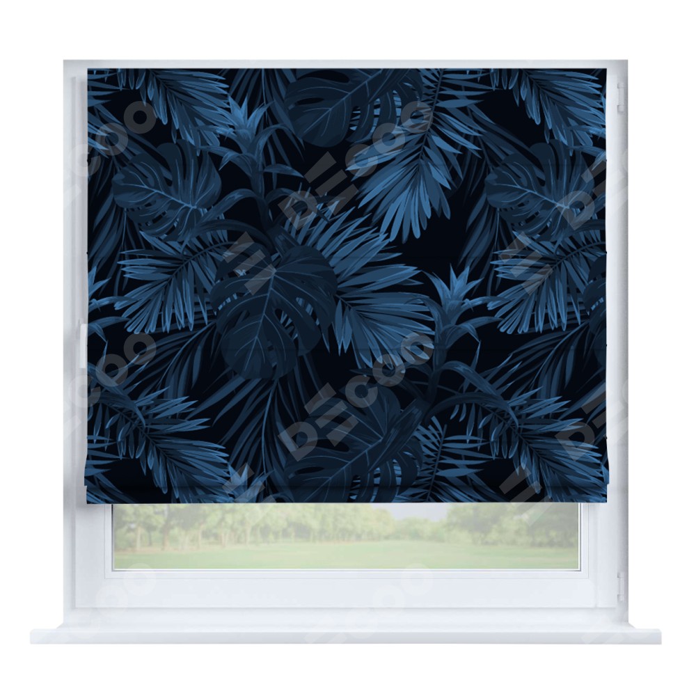 Римская штора производителя «Cortin», устанавливается на створку окна, пошита из ткани блэкаут с нанесением сублимационной печати «Ночные джунгли». Штора шьётся по индивидуальным размерам, для данного типа римской шторы возможная ширина от 35 до 150 см., высота до 250 см.
