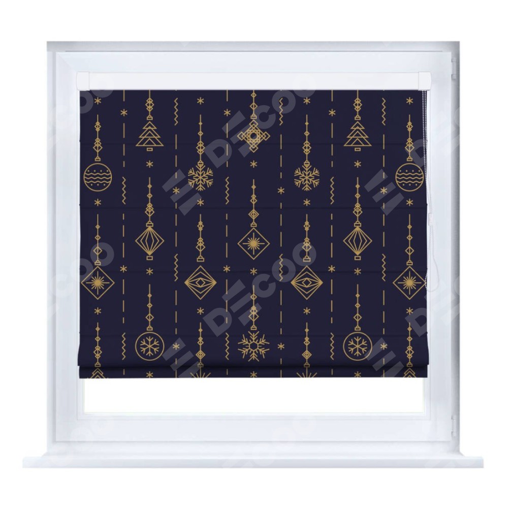 Римская штора производителя «Cortin», устанавливается на створку окна, пошита из ткани блэкаут с нанесением сублимационной печати «Сияние гирлянд». Штора шьётся по индивидуальным размерам, для данного типа римской шторы возможная ширина от 35 до 150 см., высота до 250 см.