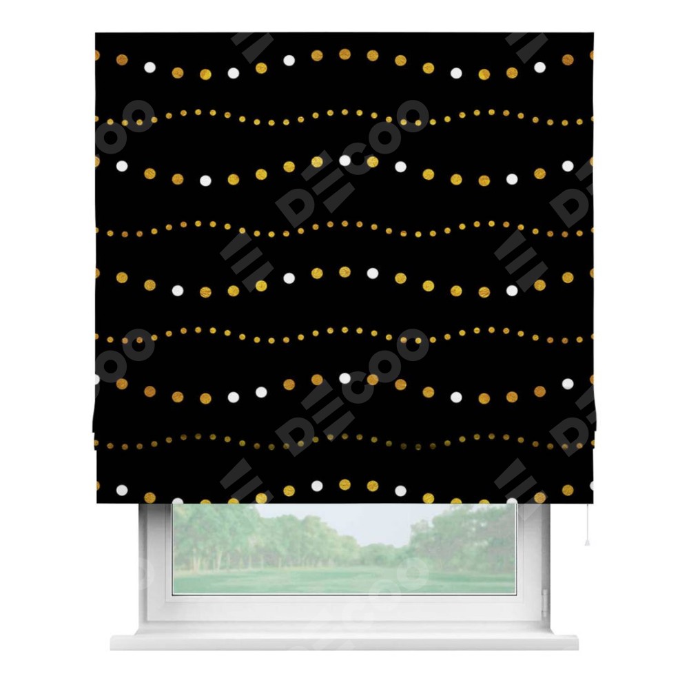 Римская штора производителя «Cortin», используется для проёма, пошита из ткани блэкаут с нанесением сублимационной печати «Яркие огоньки». Имеет универсальный механизм и подходит для монтажа: на потолок, на стену и в нишу.