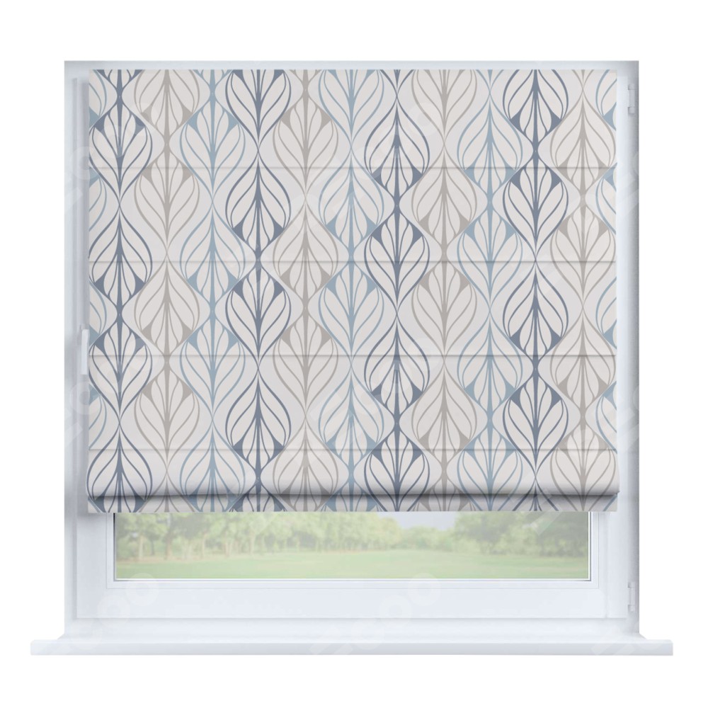 Римская штора производителя «Cortin», устанавливается на створку окна, пошита из ткани блэкаут с нанесением сублимационной печати «Растительный орнамент». Штора шьётся по индивидуальным размерам, для данного типа римской шторы возможная ширина от 35 до 150 см., высота до 250 см.