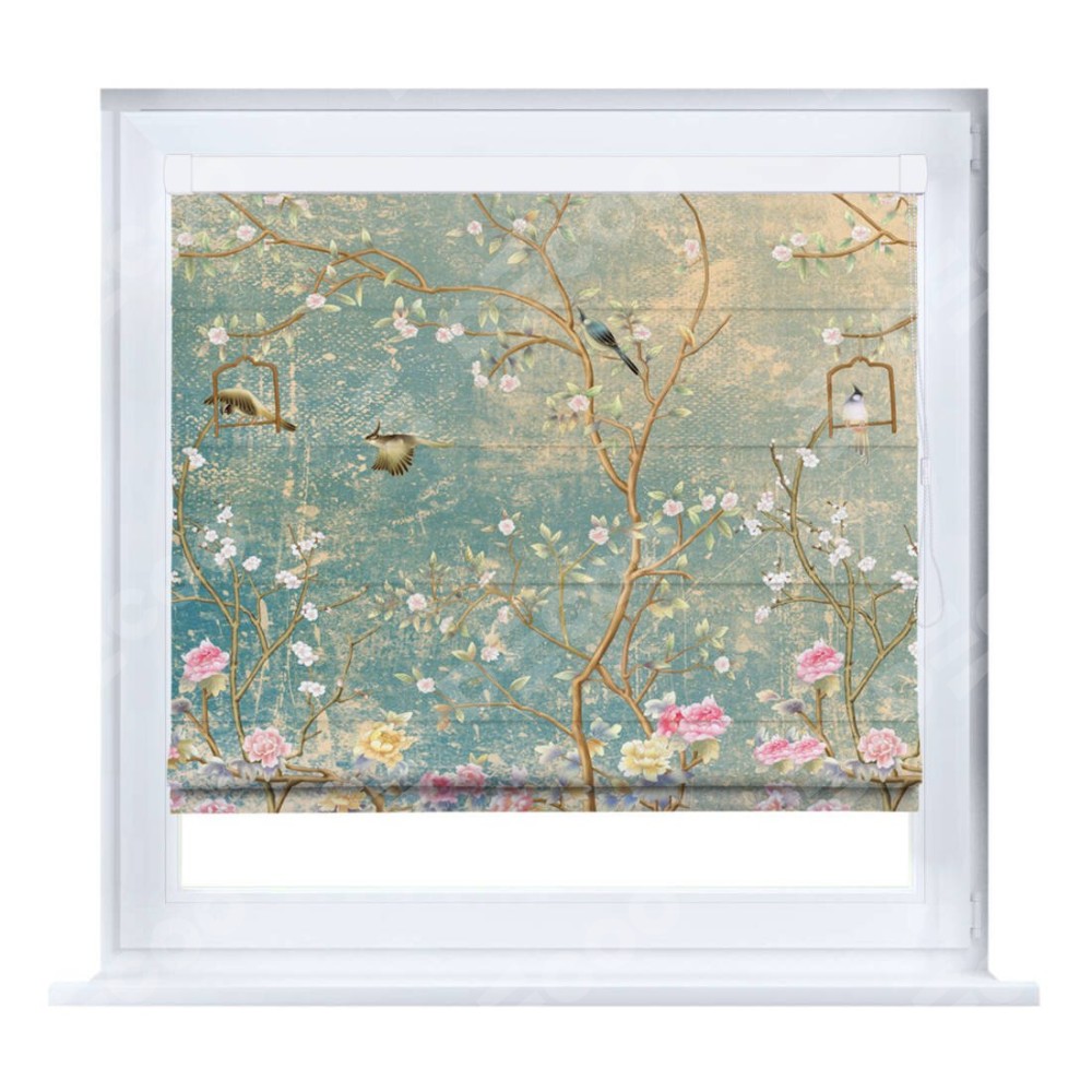 Римская штора производителя «Cortin», устанавливается на створку окна, пошита из ткани блэкаут с нанесением сублимационной печати «Цветущий сад». Штора шьётся по индивидуальным размерам, для данного типа римской шторы возможная ширина от 35 до 150 см., высота до 250 см.