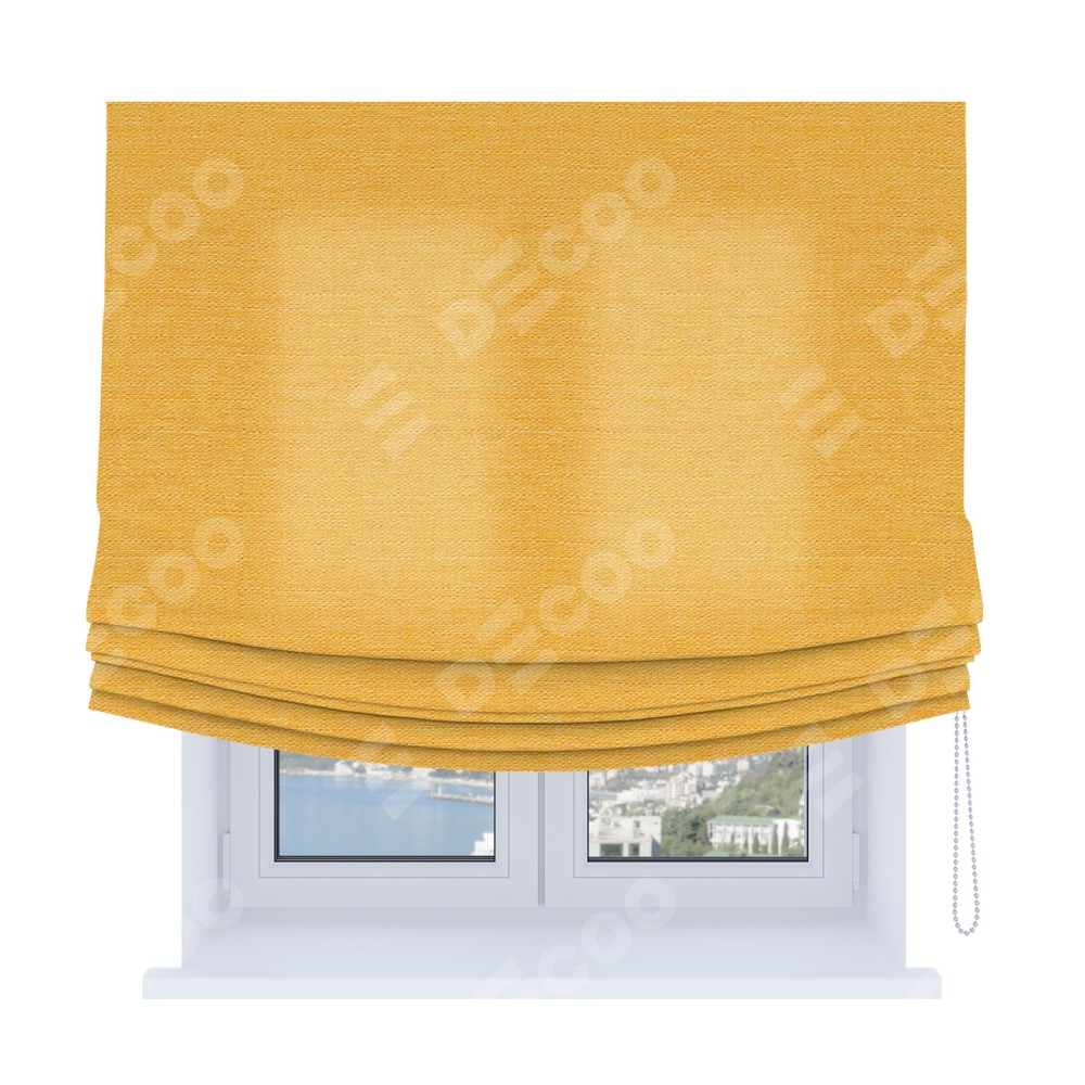 Римская штора Soft производителя «Cortin», используется для проёма, пошита из ткани лён желтый, артикул ткани 63738. Имеет универсальный механизм и подходит для монтажа: на потолок, на стену и в нишу. В отличие от стандартных римских штор, римская штора Soft не имеет горизонтальных вставок и нижнего отвеса. Это позволяет ткани произвольно драпироваться в свободные мягкие складки.