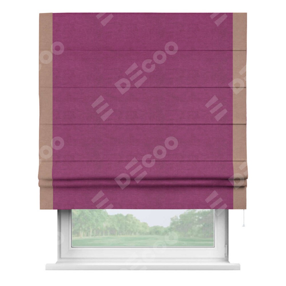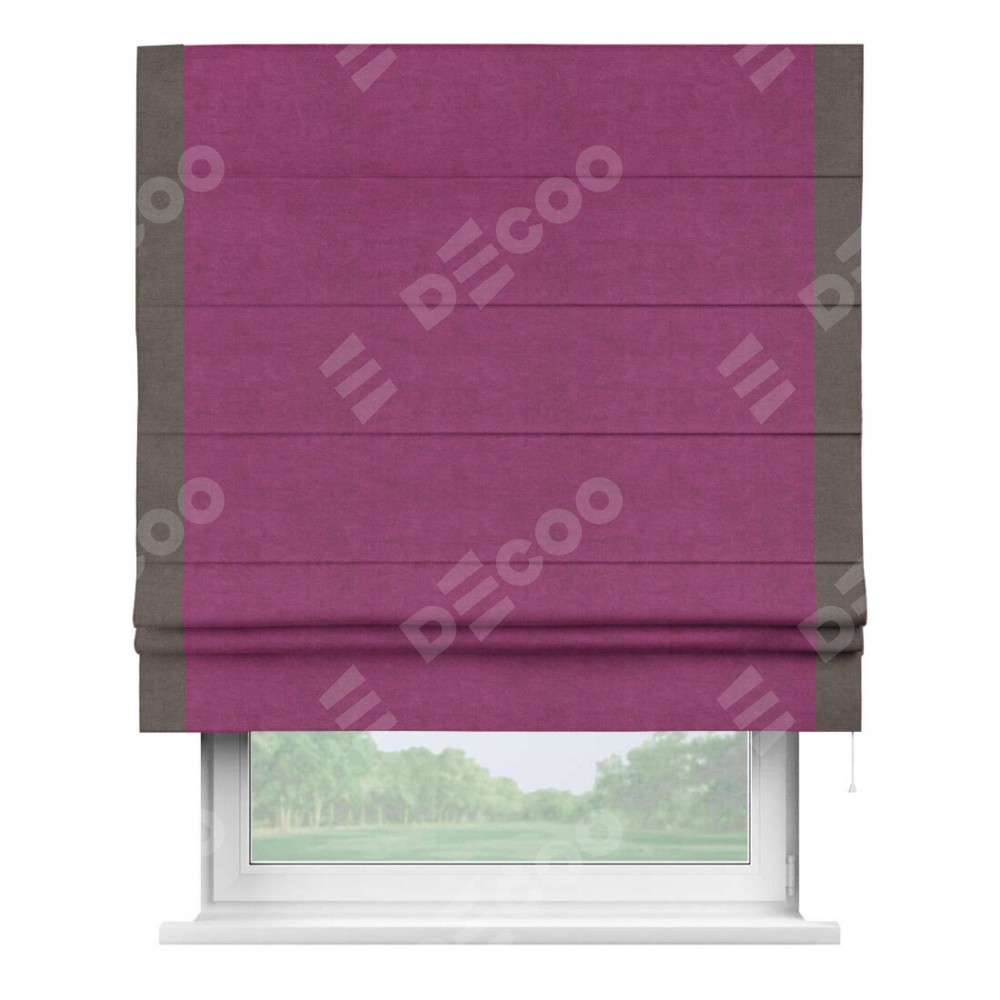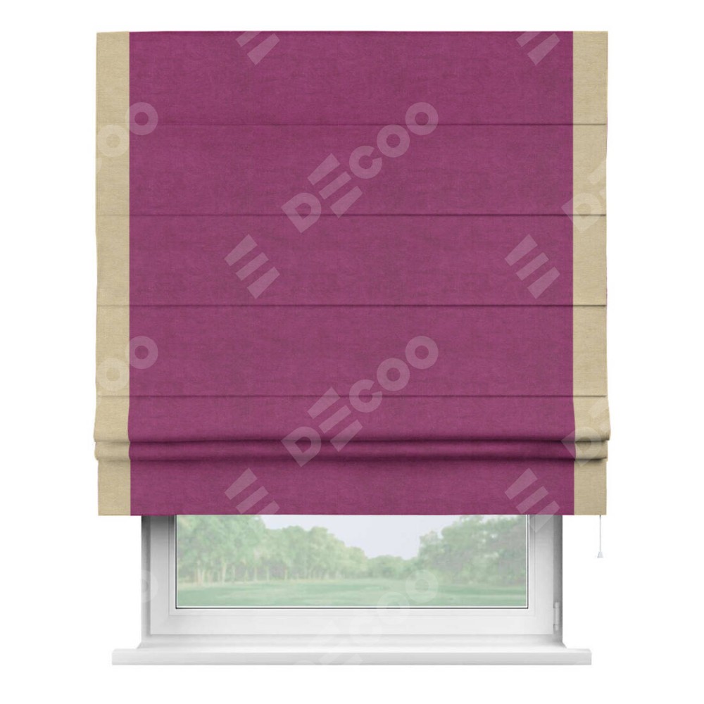 Римская штора «Кортин» с кантом Стрим Дуо, для проема, ткань вельвет фиолетовый