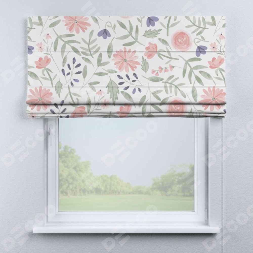 Римская штора производителя «Cortin», используется для проёма, пошита из ткани блэкаут с нанесением сублимационной печати «Изысканные цветы». Имеет универсальный механизм и подходит для монтажа: на потолок, на стену и в нишу.