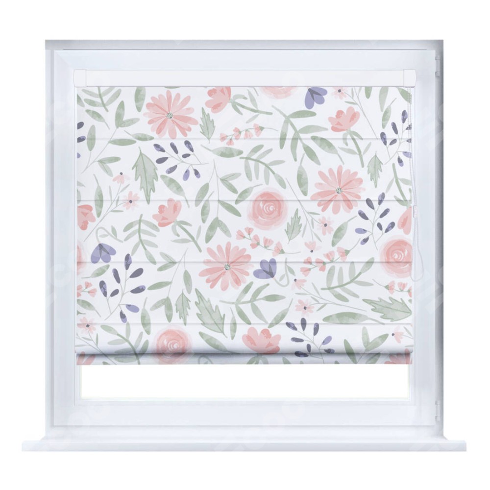 Римская штора производителя «Cortin», устанавливается на створку окна, пошита из ткани блэкаут с нанесением сублимационной печати «Изысканные цветы». Штора шьётся по индивидуальным размерам, для данного типа римской шторы возможная ширина от 35 до 150 см., высота до 250 см.