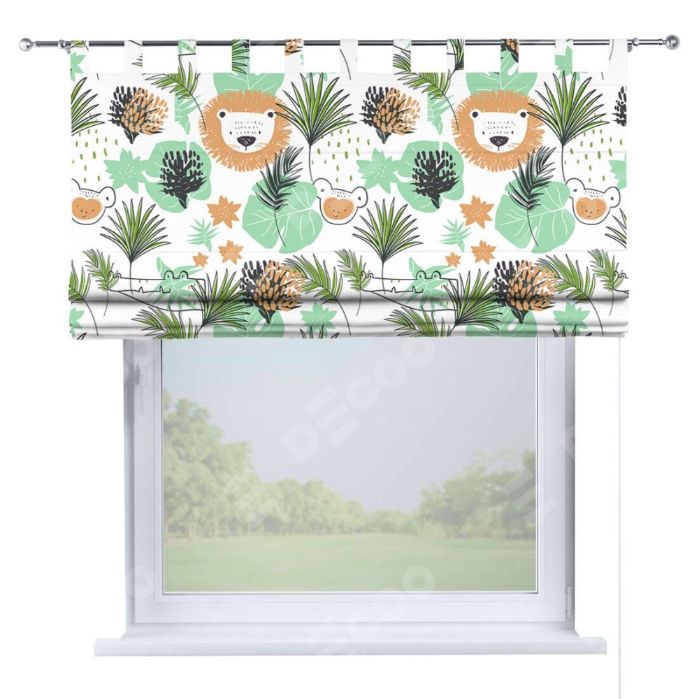 Римская штора производителя «Cortin», используется для проёма, пошита из ткани блэкаут с нанесением сублимационной печати «Животные из джунглей». Данная модель пошита на петлях, комплектуется на выбор круглым карнизом и подходит для монтажа на стену. Римская штора на петлях имеет простую систему регулировки высоты, отличительным преимуществом данной модели является простой способ монтажа. Достаточно повесить ее на трубу и штора готова!