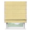 Римская штора производителя «Cortin», используется для проёма, пошита из ткани софт однотонный золотой, артикул 42934. Отделка шторы кантом «Стрим Дуо» на кантах расположены люверсы с пояском, ткань для канта используется из софта разной расцветки на выбор. Ткань для пояска обычно используется из основной ткани шторы, а так же можно сделать из любой расцветки по желанию. Имеет универсальный механизм и подходит для монтажа: на потолок, на стену и в нишу.