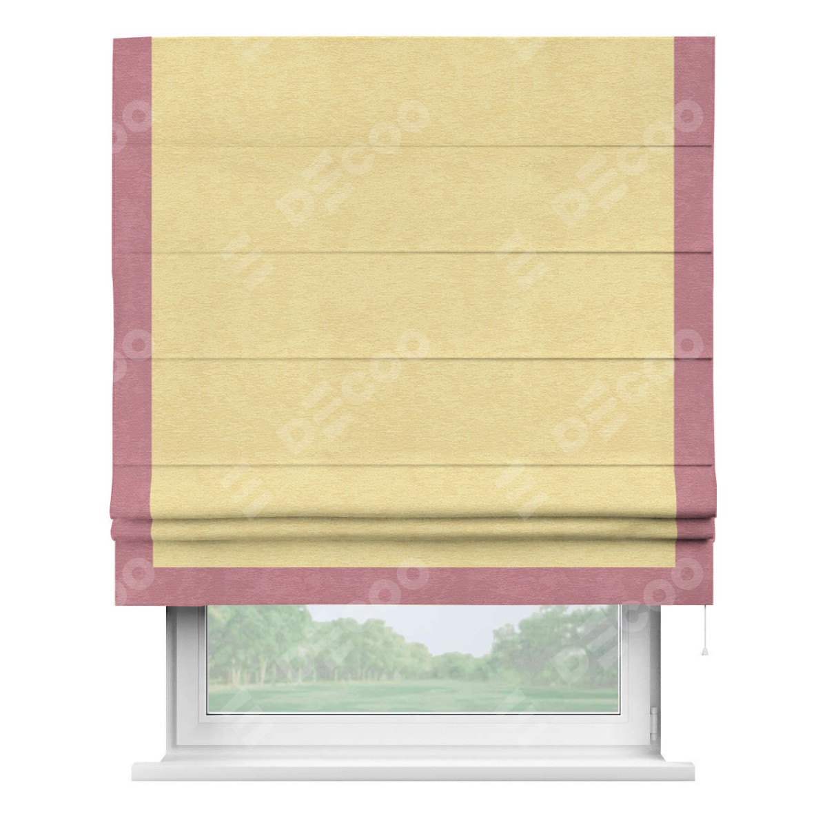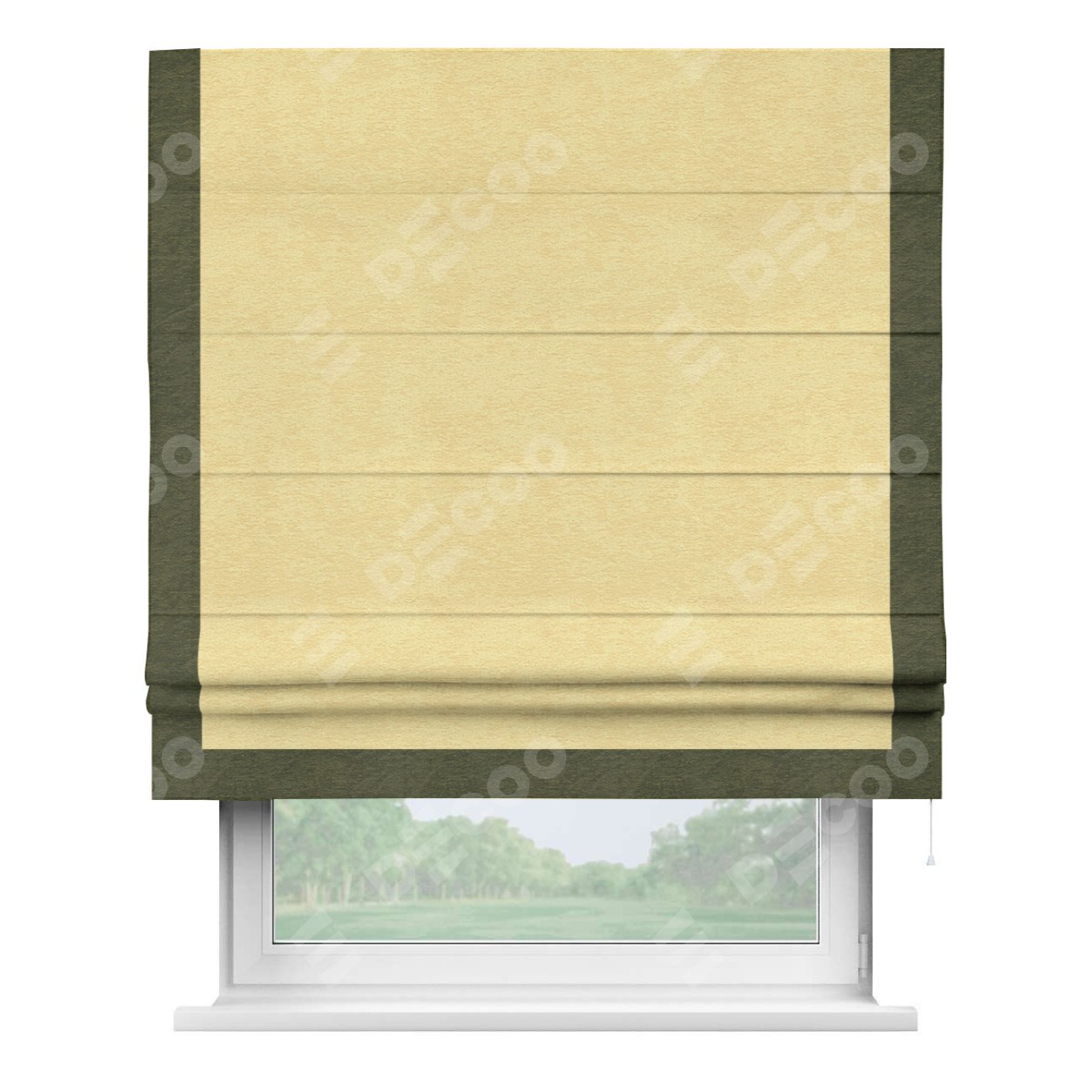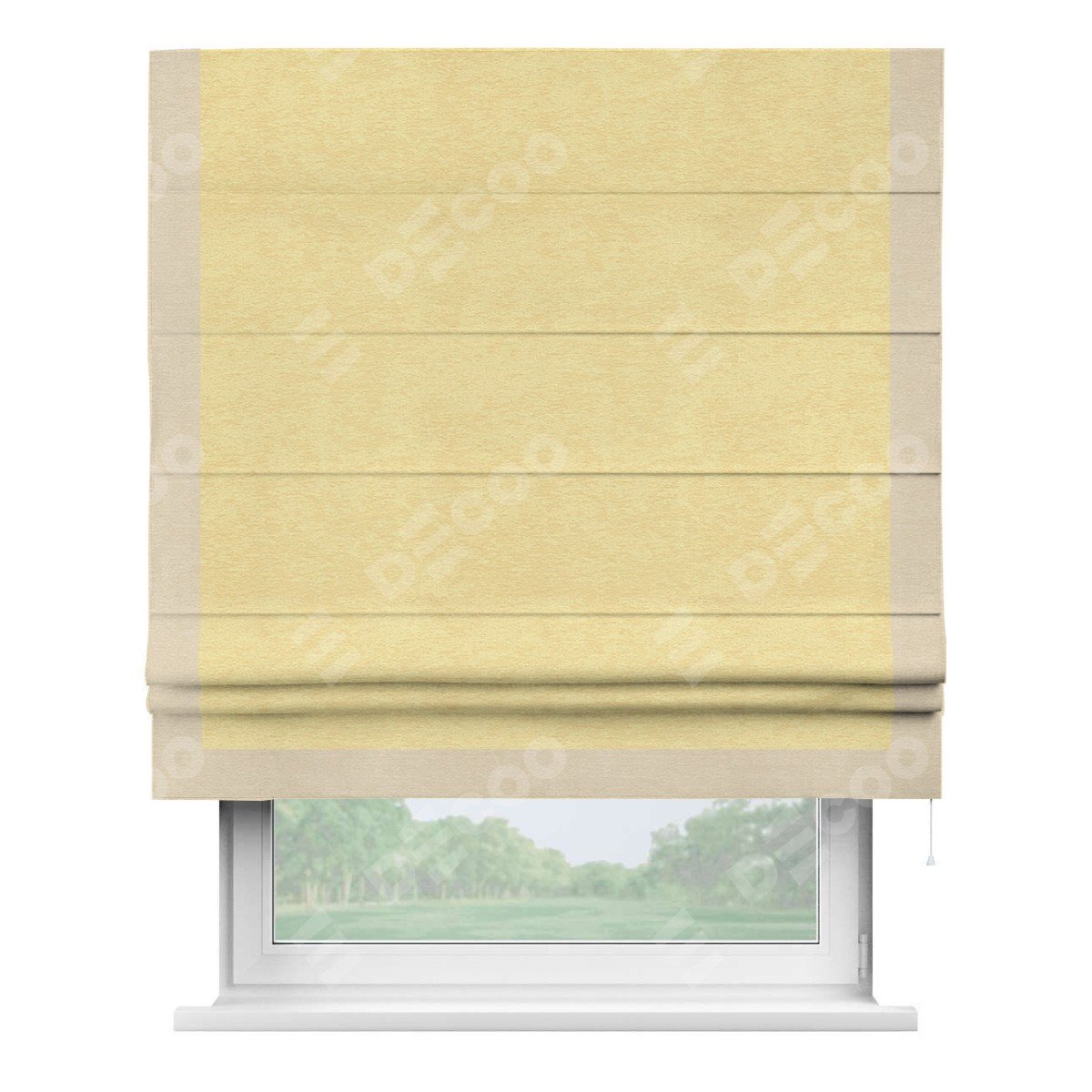 Римская штора «Кортин» с кантом Виктория, для проема, ткань софт однотонный золотой