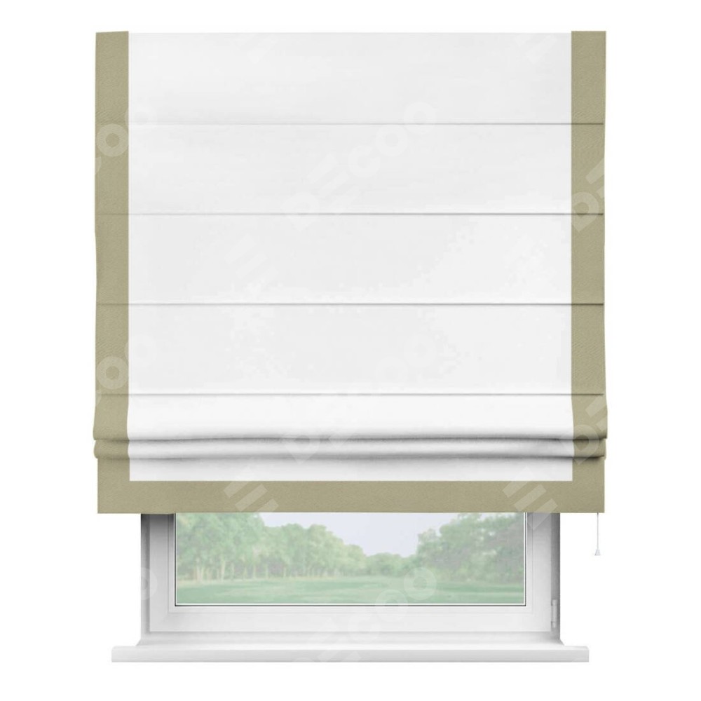 Римская штора «Кортин» с кантом Виктория, для проема, ткань однотонная белоснежная