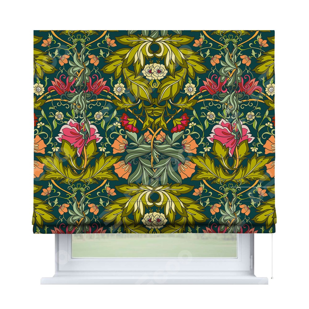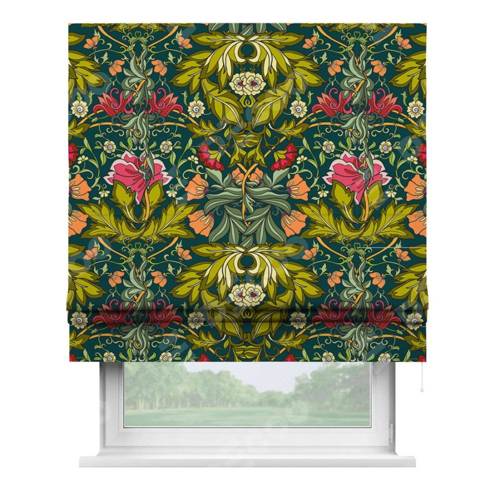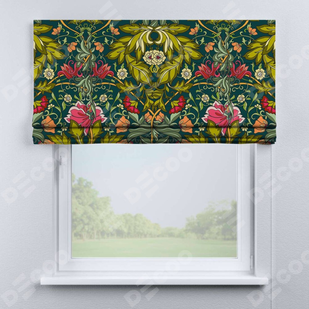 Римская штора производителя «Cortin», используется для проёма, пошита из ткани блэкаут с нанесением сублимационной печати «Цветок морриса». Имеет универсальный механизм и подходит для монтажа: на потолок, на стену и в нишу.