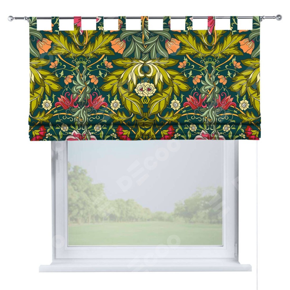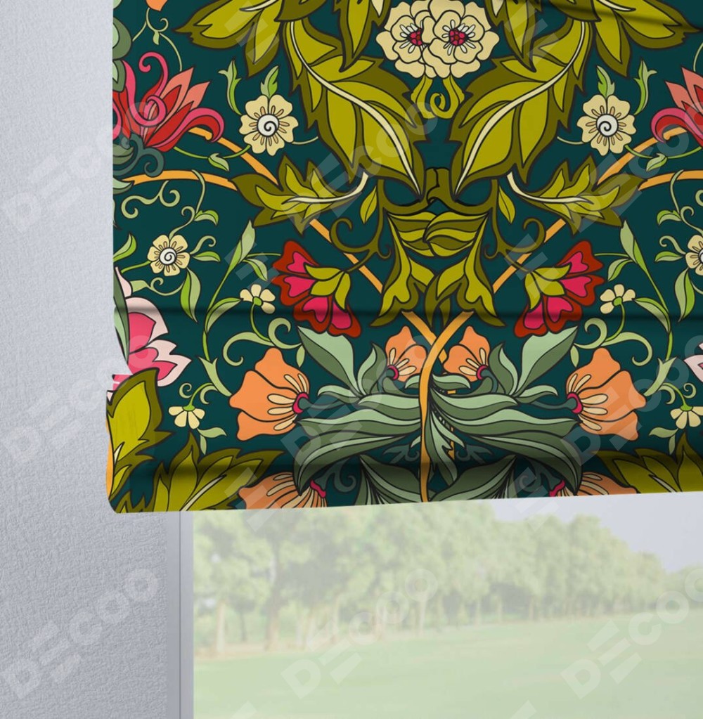 Римская штора производителя «Cortin», используется для проёма, пошита из ткани блэкаут с нанесением сублимационной печати «Цветок морриса». Данная модель пошита на петлях, комплектуется на выбор круглым карнизом и подходит для монтажа на стену. Римская штора на петлях имеет простую систему регулировки высоты, отличительным преимуществом данной модели является простой способ монтажа. Достаточно повесить ее на трубу и штора готова!