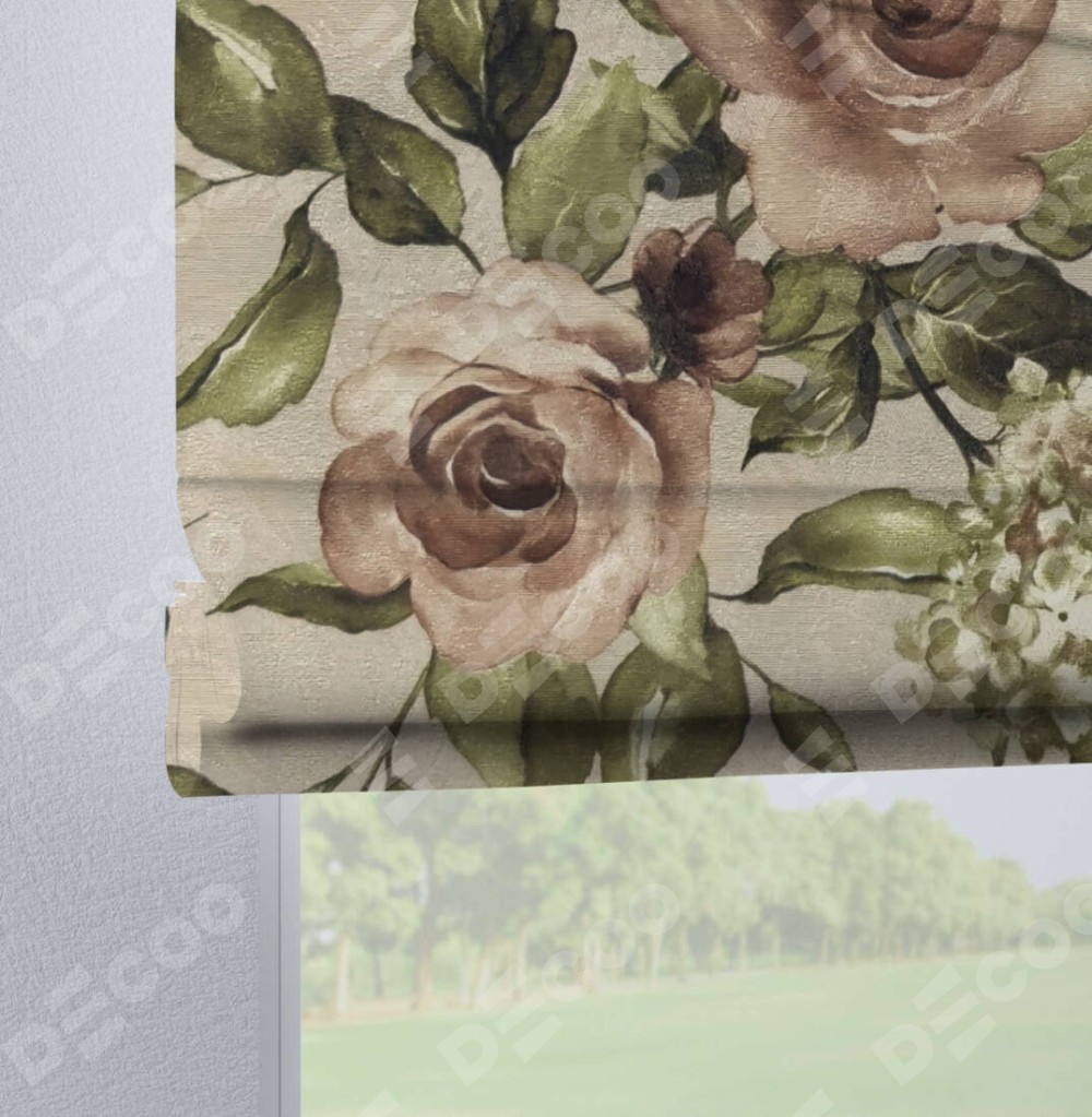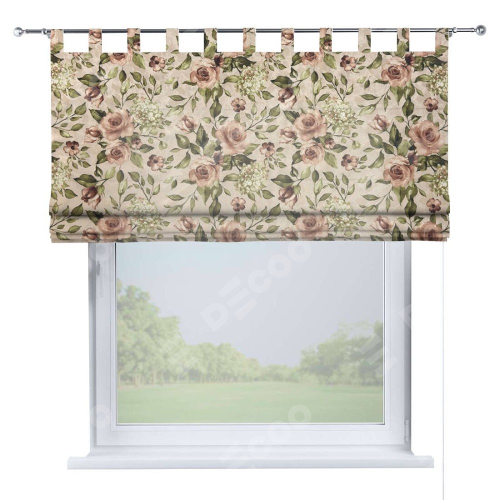 Римская штора производителя «Cortin», используется для проёма, пошита из ткани «Розы бежевые», артикул ткани 34564. Данная модель пошита на петлях, комплектуется на выбор круглым карнизом и подходит для монтажа на стену. Римская штора на петлях имеет простую систему регулировки высоты, отличительным преимуществом данной модели является простой способ монтажа. Достаточно повесить ее на трубу и штора готова!