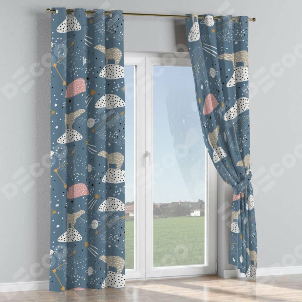 Комплект прямых штор, от производителя «Cortin», пошиты из ткани блэкаут с нанесением сублимационной печати «Белые медведи». Данная модель пошита на люверсах, комплектуется на выбор круглым карнизом и подходит для монтажа на стену или потолок. Прямые шторы на люверсах шьются по стандарту с коэффициентом 1/2 (на 100 см. ширины проёма 200 см. ширины ткани), отличительным преимуществом данной модели является простой способ монтажа. Достаточно повесить ее на трубу и штора готова!