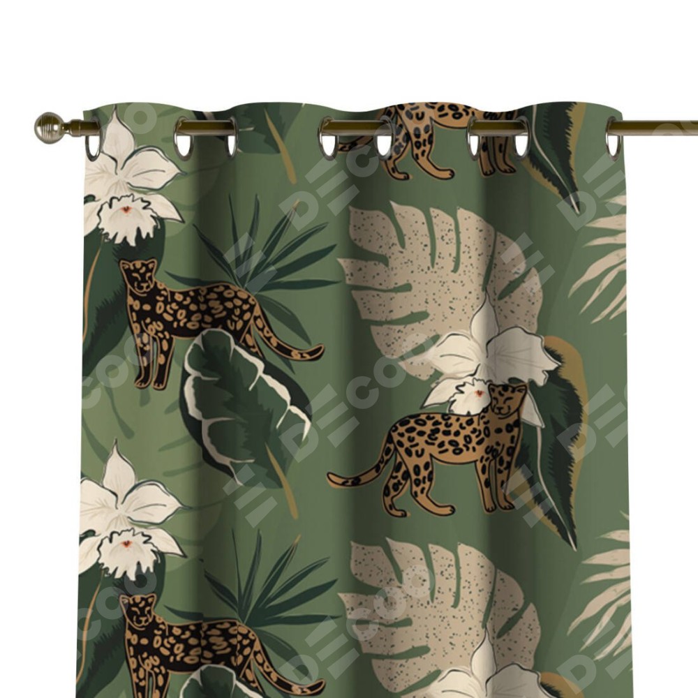 Комплект прямых штор, от производителя «Cortin», пошиты из ткани блэкаут с нанесением сублимационной печати «В тропическом лесу». Данная модель пошита на люверсах, комплектуется на выбор круглым карнизом и подходит для монтажа на стену или потолок. Прямые шторы на люверсах шьются по стандарту с коэффициентом 1/2 (на 100 см. ширины проёма 200 см. ширины ткани), отличительным преимуществом данной модели является простой способ монтажа. Достаточно повесить ее на трубу и штора готова!