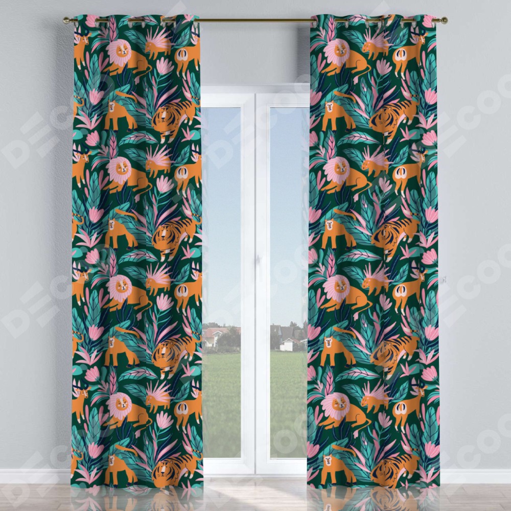 Комплект прямых штор, от производителя «Cortin», пошиты из ткани блэкаут с нанесением сублимационной печати «Дикие животные». Данная модель пошита на люверсах, комплектуется на выбор круглым карнизом и подходит для монтажа на стену или потолок. Прямые шторы на люверсах шьются по стандарту с коэффициентом 1/2 (на 100 см. ширины проёма 200 см. ширины ткани), отличительным преимуществом данной модели является простой способ монтажа. Достаточно повесить ее на трубу и штора готова!