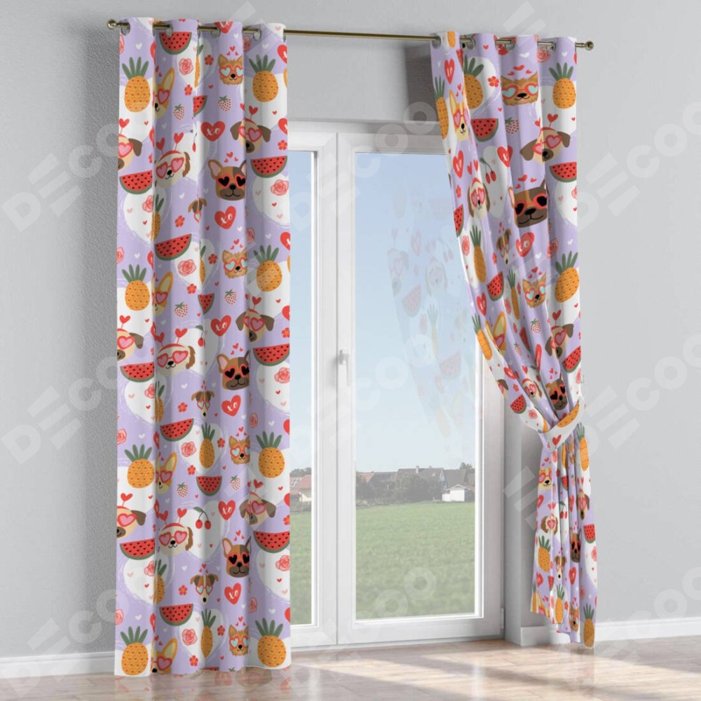 Комплект прямых штор, от производителя «Cortin», пошиты из ткани блэкаут с нанесением сублимационной печати «Забавные собачки». Данная модель пошита на люверсах, комплектуется на выбор круглым карнизом и подходит для монтажа на стену или потолок. Прямые шторы на люверсах шьются по стандарту с коэффициентом 1/2 (на 100 см. ширины проёма 200 см. ширины ткани), отличительным преимуществом данной модели является простой способ монтажа. Достаточно повесить ее на трубу и штора готова!