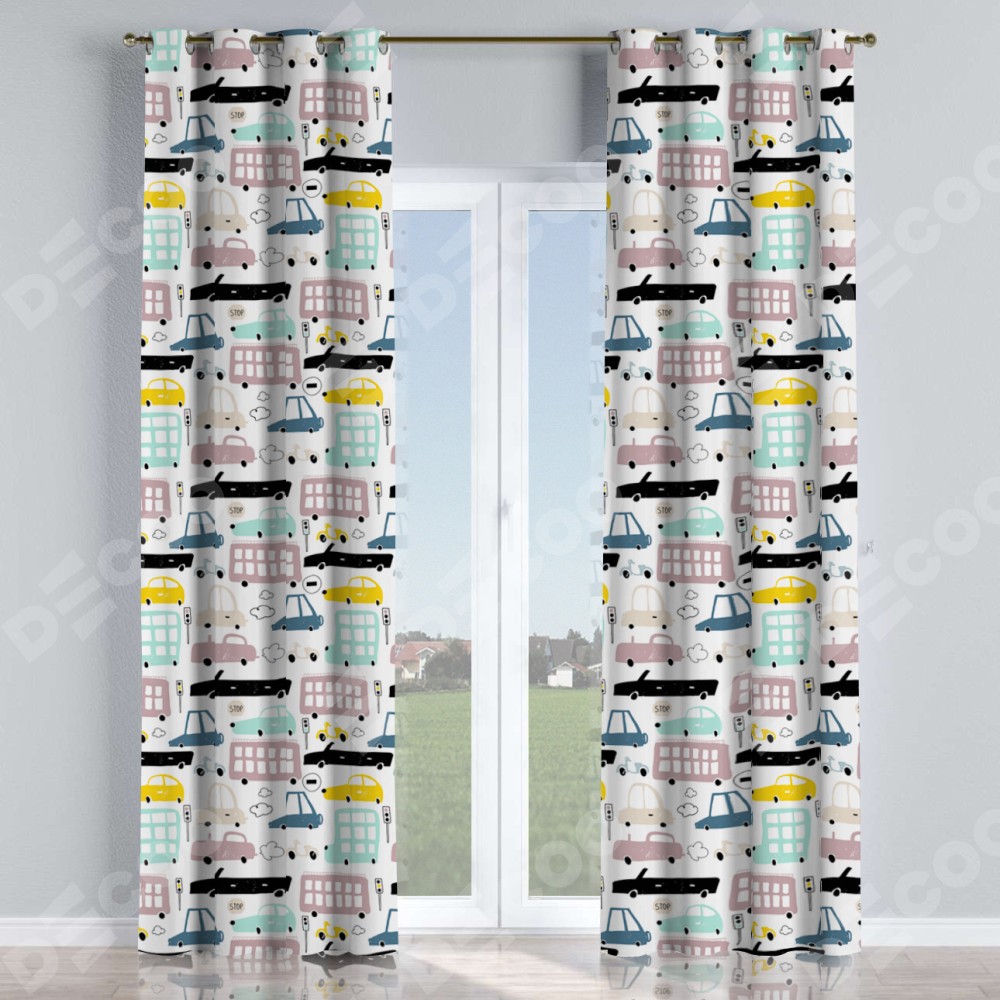 Комплект прямых штор, от производителя «Cortin», пошиты из ткани блэкаут с нанесением сублимационной печати «Красочный трафик». Данная модель пошита на люверсах, комплектуется на выбор круглым карнизом и подходит для монтажа на стену или потолок. Прямые шторы на люверсах шьются по стандарту с коэффициентом 1/2 (на 100 см. ширины проёма 200 см. ширины ткани), отличительным преимуществом данной модели является простой способ монтажа. Достаточно повесить ее на трубу и штора готова!