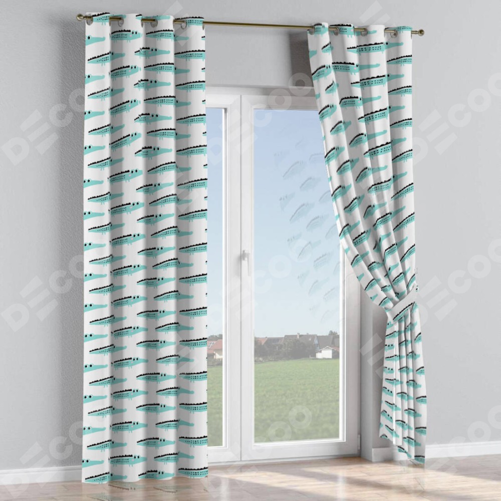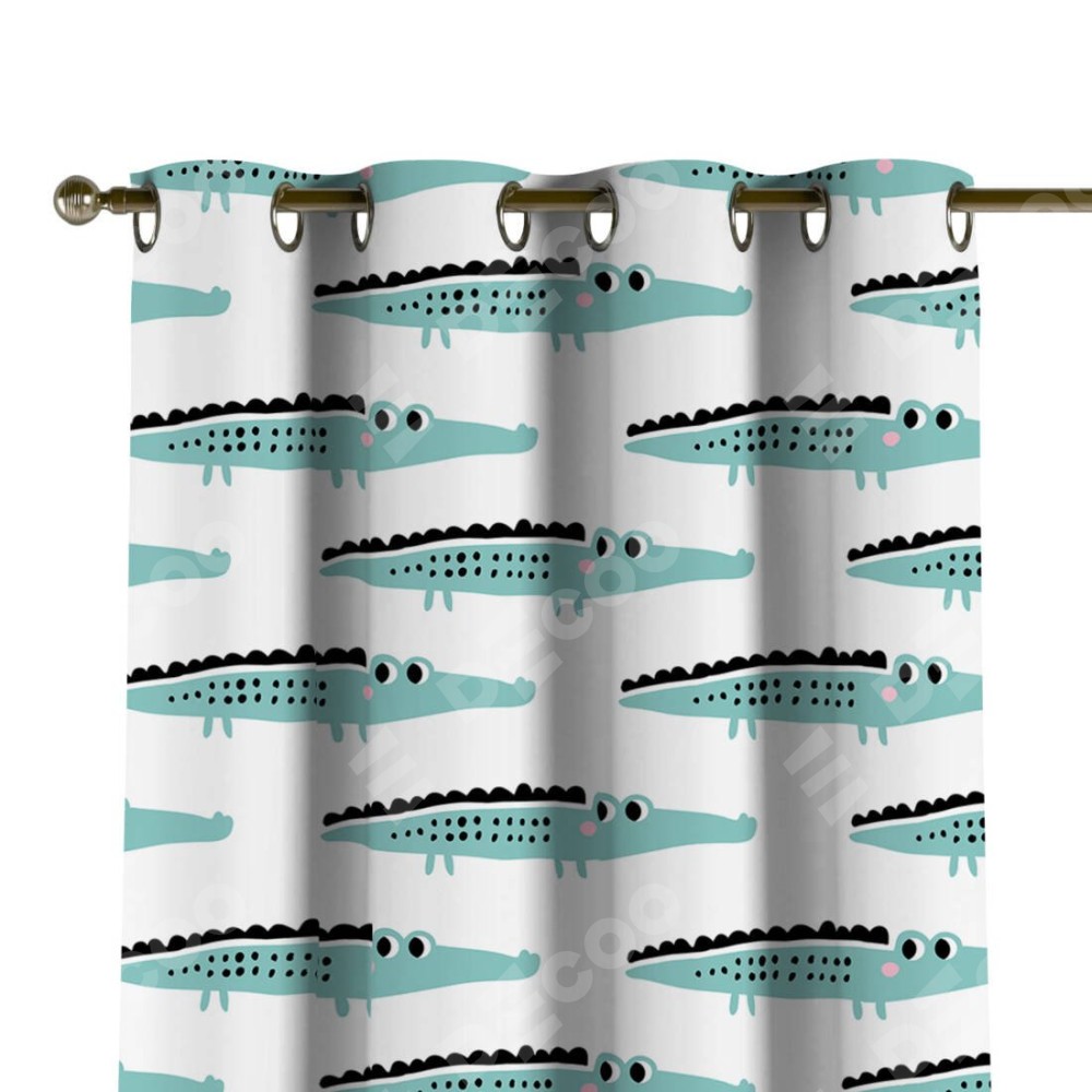 Комплект прямых штор, от производителя «Cortin», пошиты из ткани блэкаут с нанесением сублимационной печати «Мистер Крок». Данная модель пошита на люверсах, комплектуется на выбор круглым карнизом и подходит для монтажа на стену или потолок. Прямые шторы на люверсах шьются по стандарту с коэффициентом 1/2 (на 100 см. ширины проёма 200 см. ширины ткани), отличительным преимуществом данной модели является простой способ монтажа. Достаточно повесить ее на трубу и штора готова!