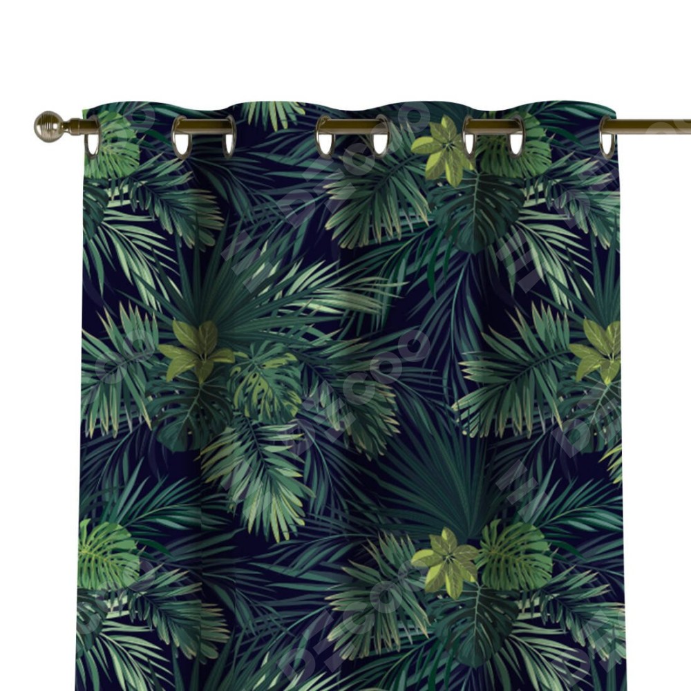 Комплект прямых штор, от производителя «Cortin», пошиты из ткани блэкаут с нанесением сублимационной печати «Пальмовые листья». Данная модель пошита на люверсах, комплектуется на выбор круглым карнизом и подходит для монтажа на стену или потолок. Прямые шторы на люверсах шьются по стандарту с коэффициентом 1/2 (на 100 см. ширины проёма 200 см. ширины ткани), отличительным преимуществом данной модели является простой способ монтажа. Достаточно повесить ее на трубу и штора готова!