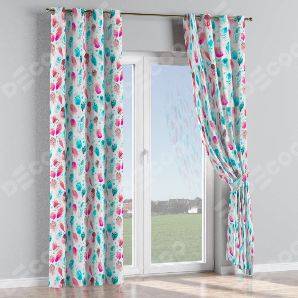 Комплект прямых штор, от производителя «Cortin», пошиты из ткани блэкаут с нанесением сублимационной печати «Перья». Данная модель пошита на люверсах, комплектуется на выбор круглым карнизом и подходит для монтажа на стену или потолок. Прямые шторы на люверсах шьются по стандарту с коэффициентом 1/2 (на 100 см. ширины проёма 200 см. ширины ткани), отличительным преимуществом данной модели является простой способ монтажа. Достаточно повесить ее на трубу и штора готова!