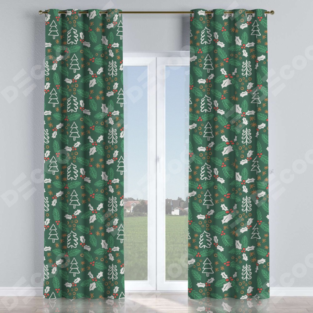 Комплект прямых штор, от производителя «Cortin», пошиты из ткани блэкаут с нанесением сублимационной печати «Рождественский узор». Данная модель пошита на люверсах, комплектуется на выбор круглым карнизом и подходит для монтажа на стену или потолок. Прямые шторы на люверсах шьются по стандарту с коэффициентом 1/2 (на 100 см. ширины проёма 200 см. ширины ткани), отличительным преимуществом данной модели является простой способ монтажа. Достаточно повесить ее на трубу и штора готова!