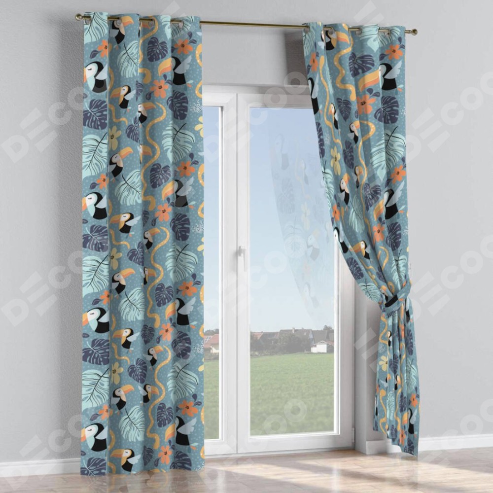 Комплект прямых штор, от производителя «Cortin», пошиты из ткани блэкаут с нанесением сублимационной печати «Экзотические птицы». Данная модель пошита на люверсах, комплектуется на выбор круглым карнизом и подходит для монтажа на стену или потолок. Прямые шторы на люверсах шьются по стандарту с коэффициентом 1/2 (на 100 см. ширины проёма 200 см. ширины ткани), отличительным преимуществом данной модели является простой способ монтажа. Достаточно повесить ее на трубу и штора готова!