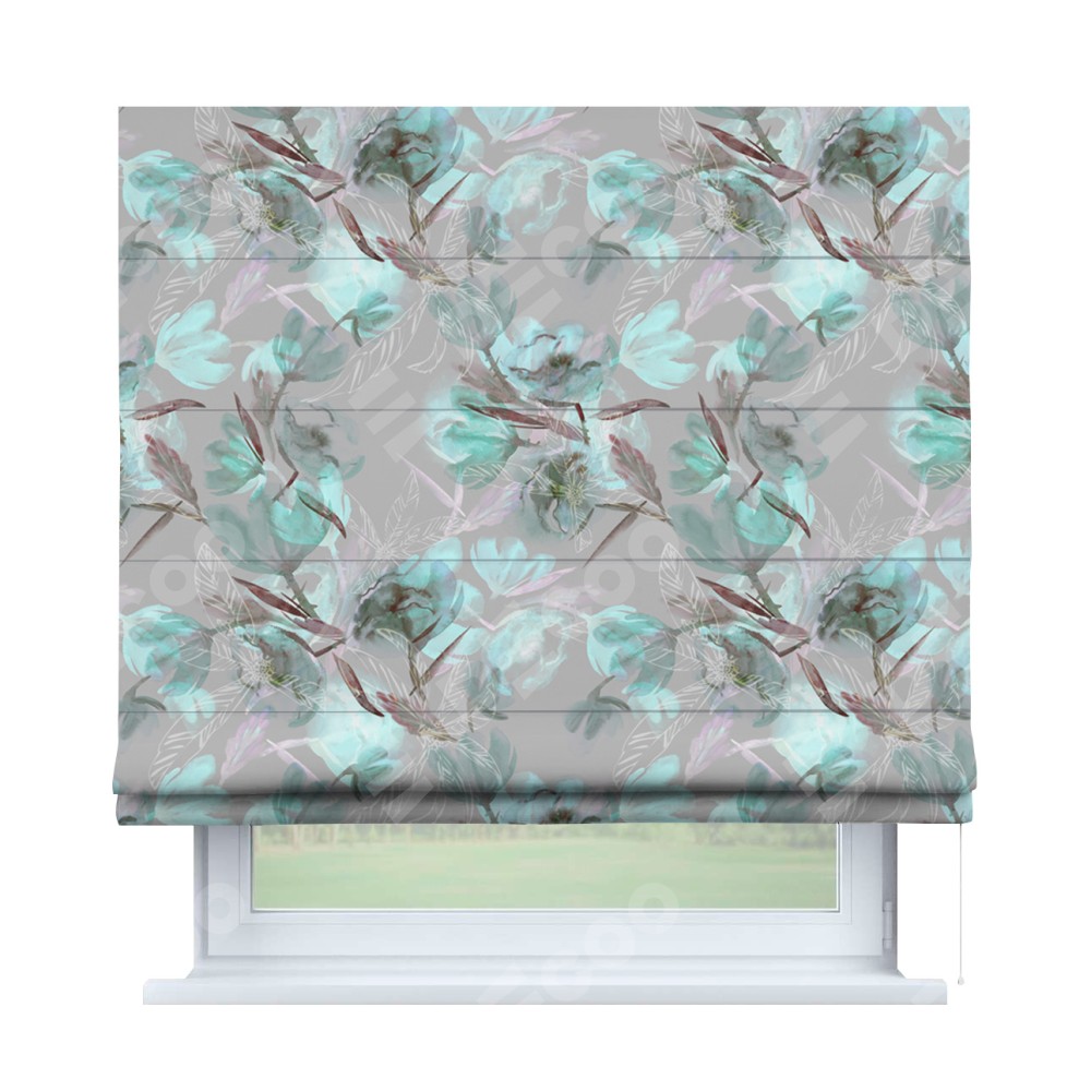 Римская штора производителя «Cortin», используется для проёма, пошита из ткани блэкаут с нанесением сублимационной печати «Цветочная акварель». Имеет универсальный механизм и подходит для монтажа: на потолок, на стену и в нишу.