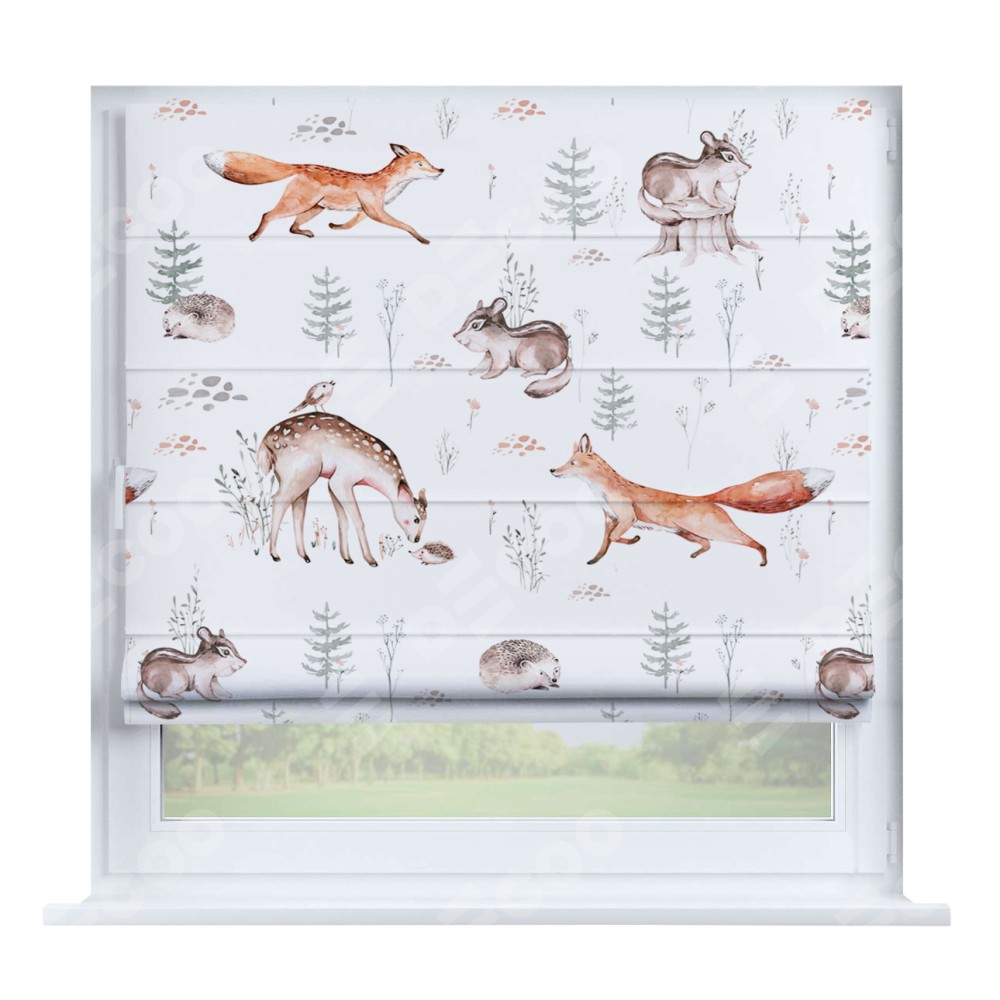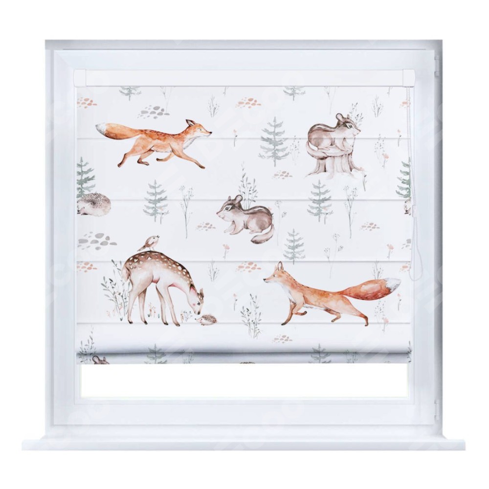 Римская штора производителя «Cortin», устанавливается на створку окна, пошита из ткани блэкаут с нанесением сублимационной печати «Пушистый питомник». Штора шьётся по индивидуальным размерам, для данного типа римской шторы возможная ширина от 35 до 150 см., высота до 250 см.