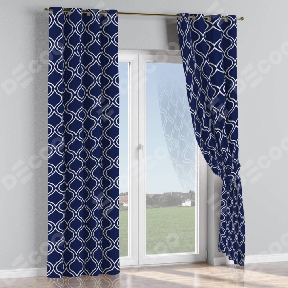 Комплект прямых штор, от производителя «Cortin», пошиты из ткани блэкаут с нанесением сублимационной печати «Тайны востока синий». Данная модель пошита на люверсах, комплектуется на выбор круглым карнизом и подходит для монтажа на стену или потолок. Прямые шторы на люверсах шьются по стандарту с коэффициентом 1/2 (на 100 см. ширины проёма 200 см. ширины ткани), отличительным преимуществом данной модели является простой способ монтажа. Достаточно повесить ее на трубу и штора готова!