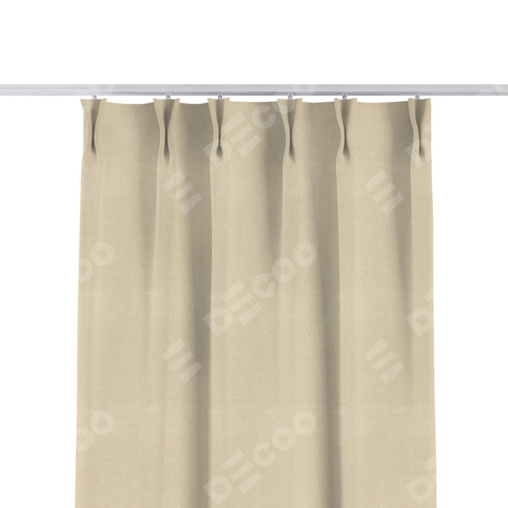 Комплект прямых штор, от производителя «Cortin», пошиты из ткани блэкаут однотонный бежевый, артикул ткани 13125. С изнаночной стороны в верхней части штор пристрачивается шторная лента с декоративными складками «Кустик». Для создания элегантных складок прямые шторы шьются по стандарту с коэффициентом 1:2 (на 100 см. ширины проёма 200 см. ширины ткани).