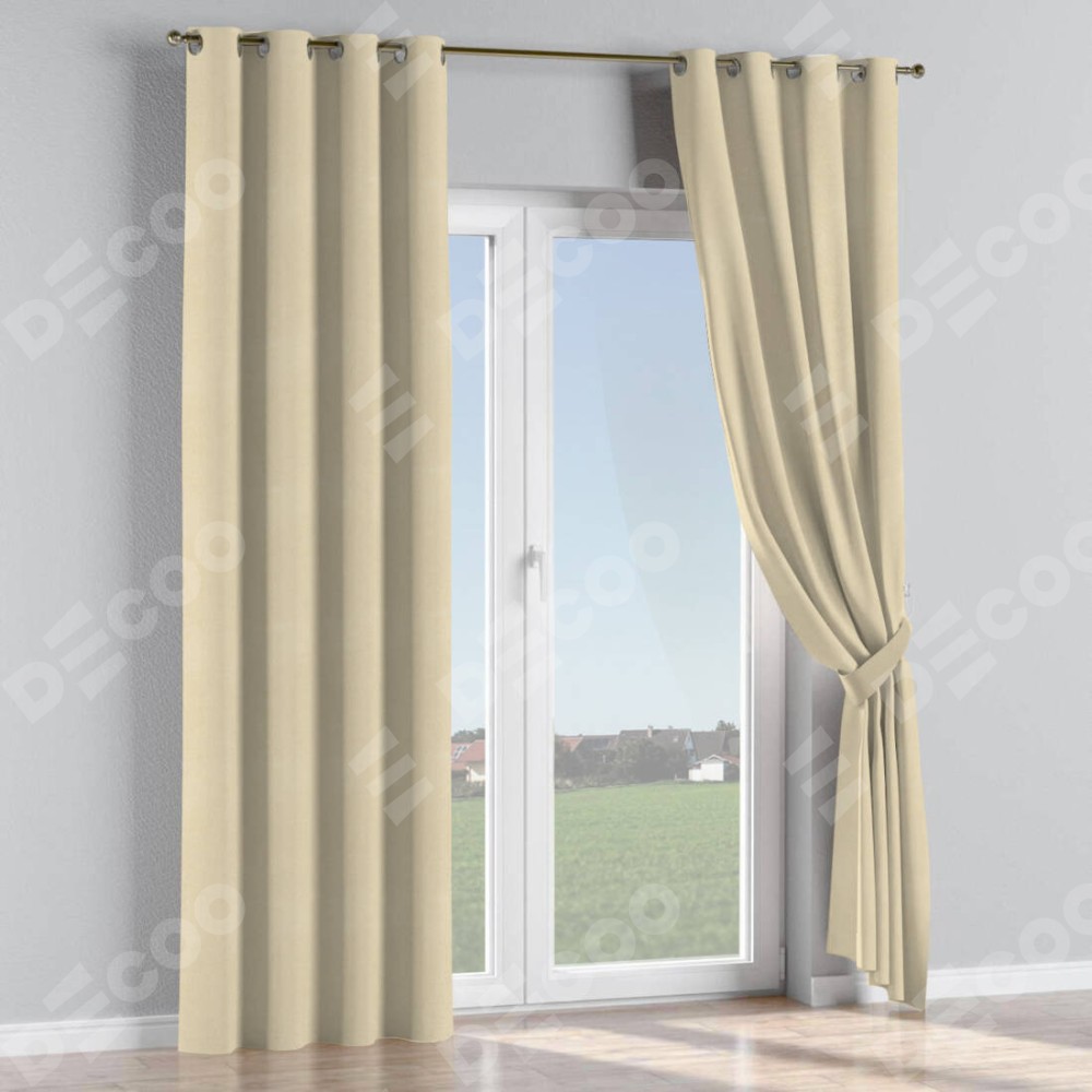 Комплект прямых штор, от производителя «Cortin», пошиты из ткани блэкаут однотонный бежевый, артикул ткани 13125. Данная модель пошита на люверсах, комплектуется на выбор круглым карнизом и подходит для монтажа на стену или потолок. Прямые шторы на люверсах шьются по стандарту с коэффициентом 1/2 (на 100 см. ширины проёма 200 см. ширины ткани), отличительным преимуществом данной модели является простой способ монтажа. Достаточно повесить ее на трубу и штора готова!