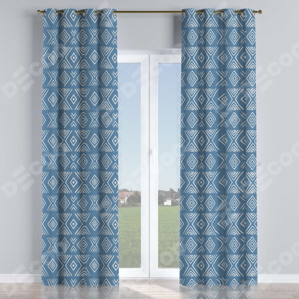 Комплект прямых штор, от производителя «Cortin», пошиты из ткани блэкаут с нанесением сублимационной печати «Графический орнамент». Данная модель пошита на люверсах, комплектуется на выбор круглым карнизом и подходит для монтажа на стену или потолок. Прямые шторы на люверсах шьются по стандарту с коэффициентом 1/2 (на 100 см. ширины проёма 200 см. ширины ткани), отличительным преимуществом данной модели является простой способ монтажа. Достаточно повесить ее на трубу и штора готова!