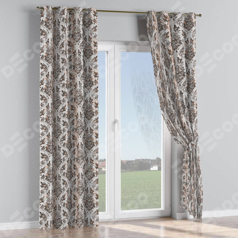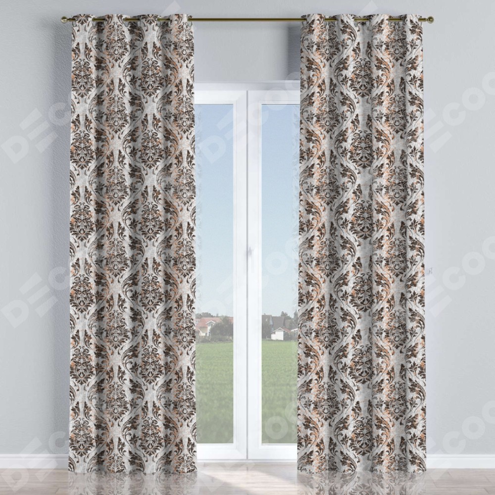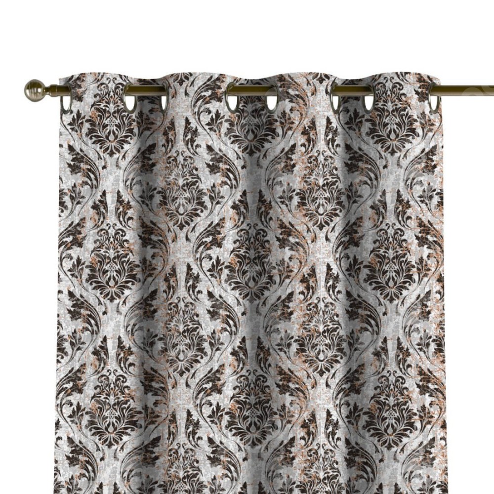 Комплект прямых штор, от производителя «Cortin», пошиты из ткани блэкаут с нанесением сублимационной печати «Дамаск тёмный». Данная модель пошита на люверсах, комплектуется на выбор круглым карнизом и подходит для монтажа на стену или потолок. Прямые шторы на люверсах шьются по стандарту с коэффициентом 1/2 (на 100 см. ширины проёма 200 см. ширины ткани), отличительным преимуществом данной модели является простой способ монтажа. Достаточно повесить ее на трубу и штора готова!