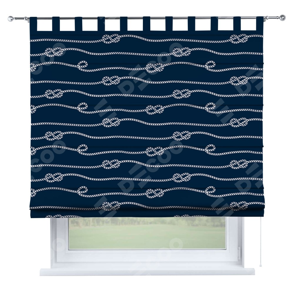 Римская штора производителя «Cortin», используется для проёма, пошита из ткани блэкаут с нанесением сублимационной печати «Морской узел». Данная модель пошита на петлях, комплектуется на выбор круглым карнизом и подходит для монтажа на стену. Римская штора на петлях имеет простую систему регулировки высоты, отличительным преимуществом данной модели является простой способ монтажа. Достаточно повесить ее на трубу и штора готова!