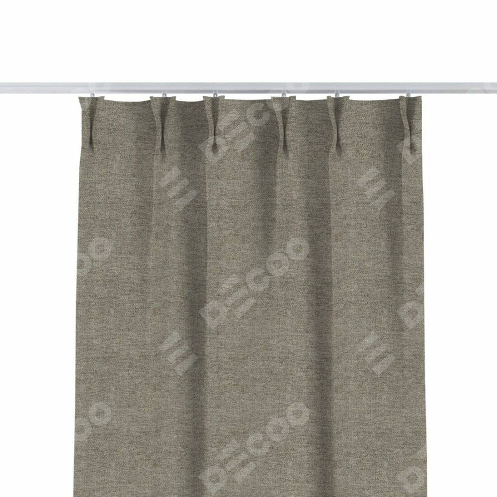Комплект прямых штор, от производителя «Cortin», пошиты из ткани стиф димаут серо-коричневый, артикул ткани 44028. С изнаночной стороны в верхней части штор пристрачивается шторная лента с декоративными складками «Кустик». Для создания элегантных складок прямые шторы шьются по стандарту с коэффициентом 1:2 (на 100 см. ширины проёма 200 см. ширины ткани).