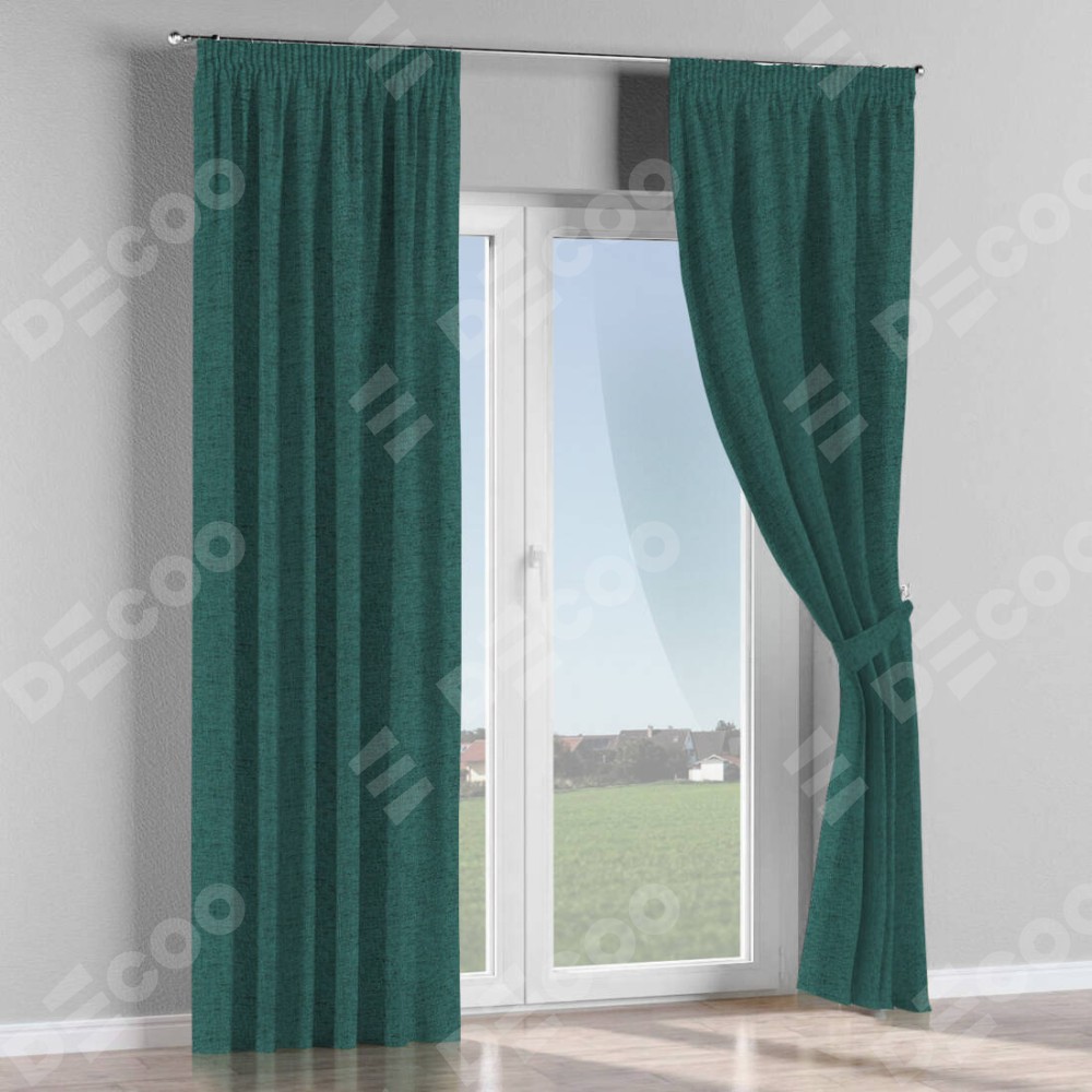 Комплект прямых штор, от производителя «Cortin», пошиты из ткани стиф димаут сине-зелёный, артикул ткани 18194. С изнаночной стороны в верхней части штор пристрачивается шторная лента с декоративными складками «Карандаш». Для создания элегантных складок прямые шторы шьются по стандарту с коэффициентом 1:2 (на 100 см. ширины проёма 200 см. ширины ткани).