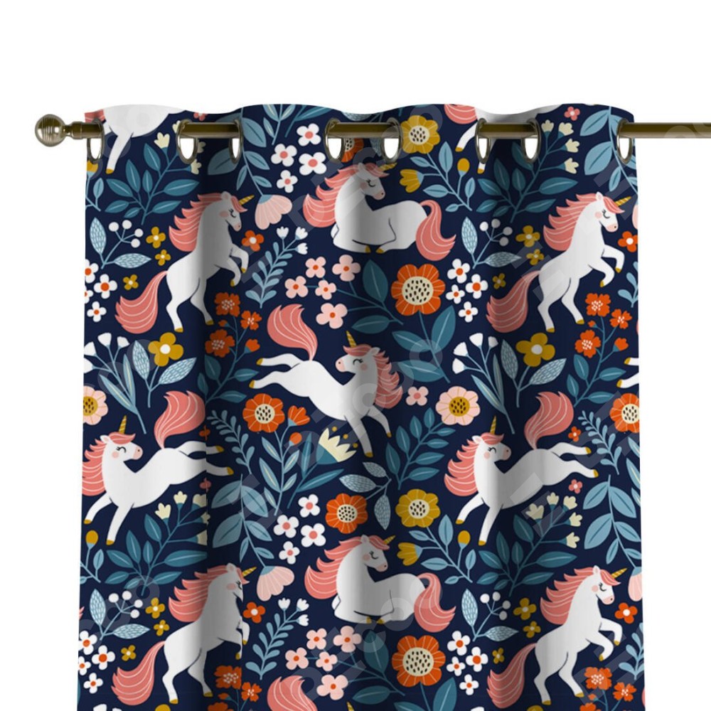 Комплект прямых штор, от производителя «Cortin», пошиты из ткани блэкаут с нанесением сублимационной печати «Цветы и единороги». Данная модель пошита на люверсах, комплектуется на выбор круглым карнизом и подходит для монтажа на стену или потолок. Прямые шторы на люверсах шьются по стандарту с коэффициентом 1/2 (на 100 см. ширины проёма 200 см. ширины ткани), отличительным преимуществом данной модели является простой способ монтажа. Достаточно повесить ее на трубу и штора готова!