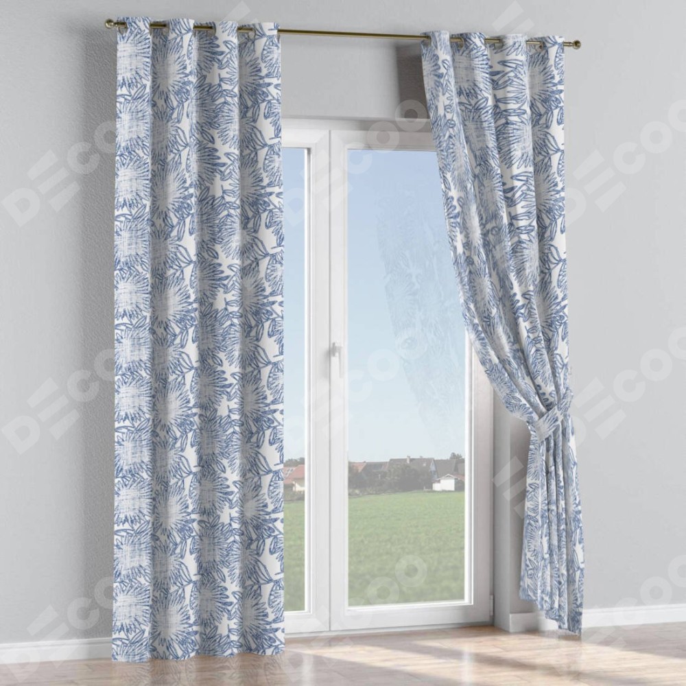 Комплект прямых штор, от производителя «Cortin», пошиты из ткани блэкаут с нанесением сублимационной печати «Синий букет». Данная модель пошита на люверсах, комплектуется на выбор круглым карнизом и подходит для монтажа на стену или потолок. Прямые шторы на люверсах шьются по стандарту с коэффициентом 1/2 (на 100 см. ширины проёма 200 см. ширины ткани), отличительным преимуществом данной модели является простой способ монтажа. Достаточно повесить ее на трубу и штора готова!